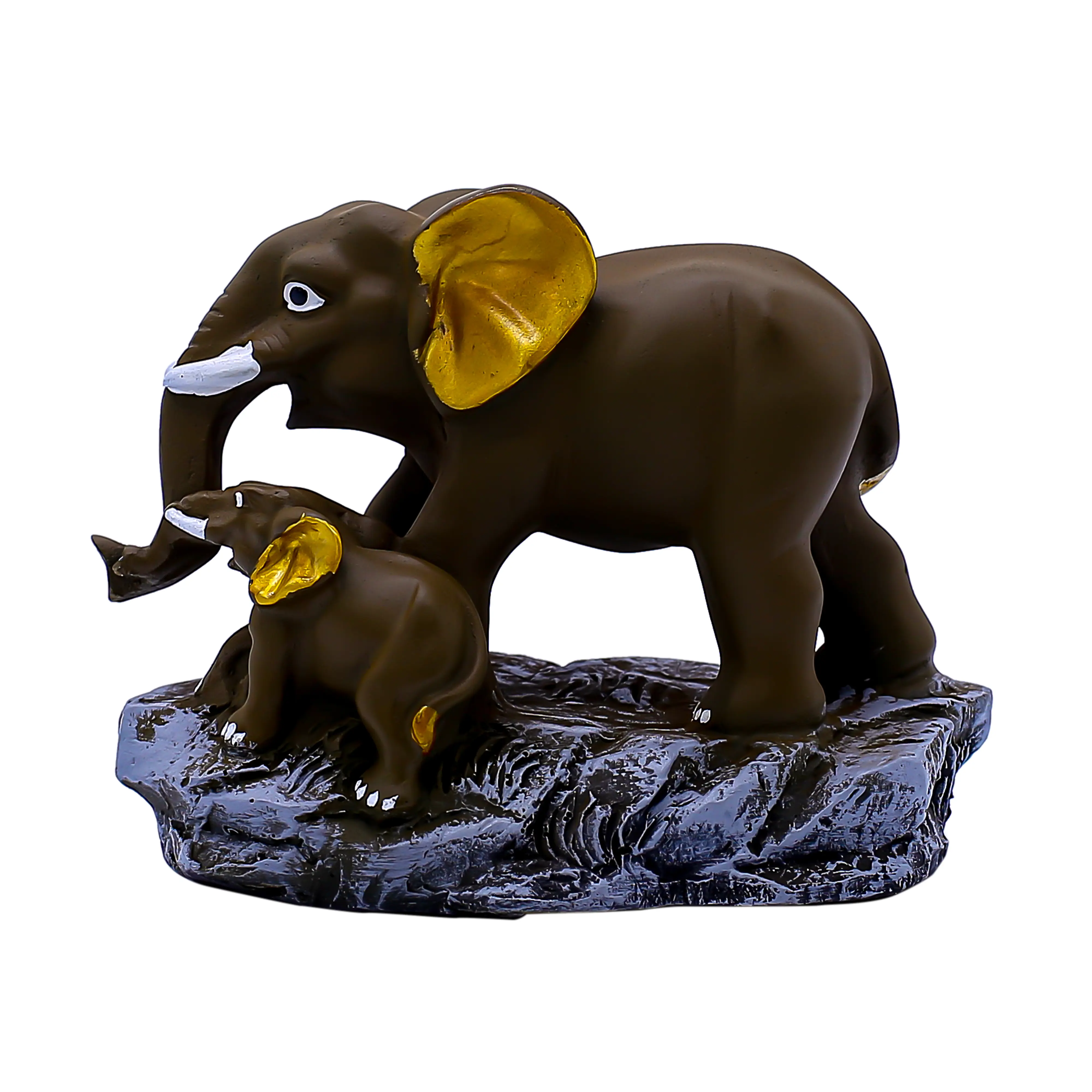 Exquisite Craftsmanship & Design Designed for the modern home that appreciates traditional roots, this statue features a lifelike texture simulating the natural skin of an elephant. The base color is a deep, warm antique brown that complements almost any interior color palette, from beige and cream to dark woods. The highlight of this piece is the luxurious gold detailing on the inner ears and tusks, which catches the light beautifully, making it an instant focal point in any room. The duo stands on a rugged, grey-toned rocky base, ensuring stability and adding to the realistic appeal.