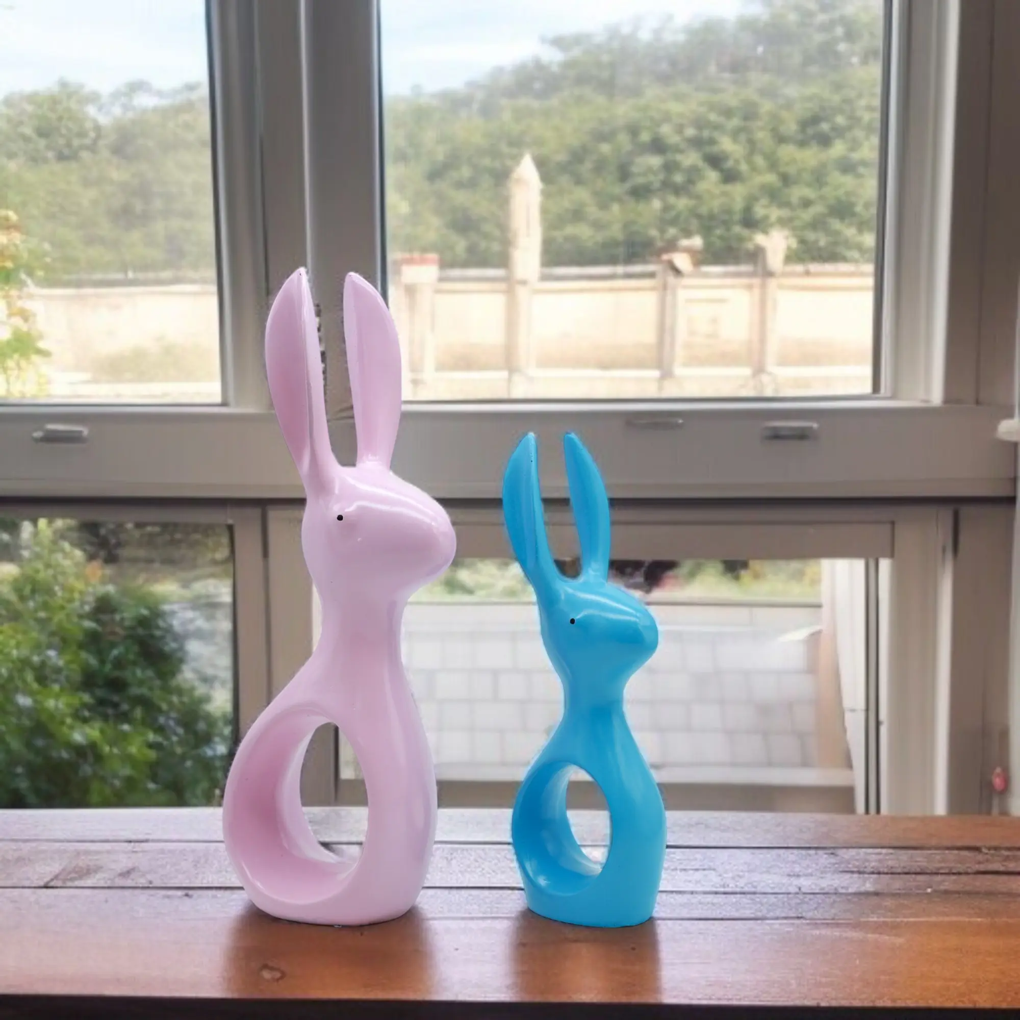 Rabbits are symbols of vitality, playfulness, and new beginnings. Our Pink & Blue Hollow Rabbit Figurine Set captures these positive vibes in a design that is sleek, contemporary, and undeniably cute. Unlike realistic animal statues, these figures use abstract forms and smooth curves to create a silhouette that is pleasing to the eye and fits seamlessly into modern decor themes.