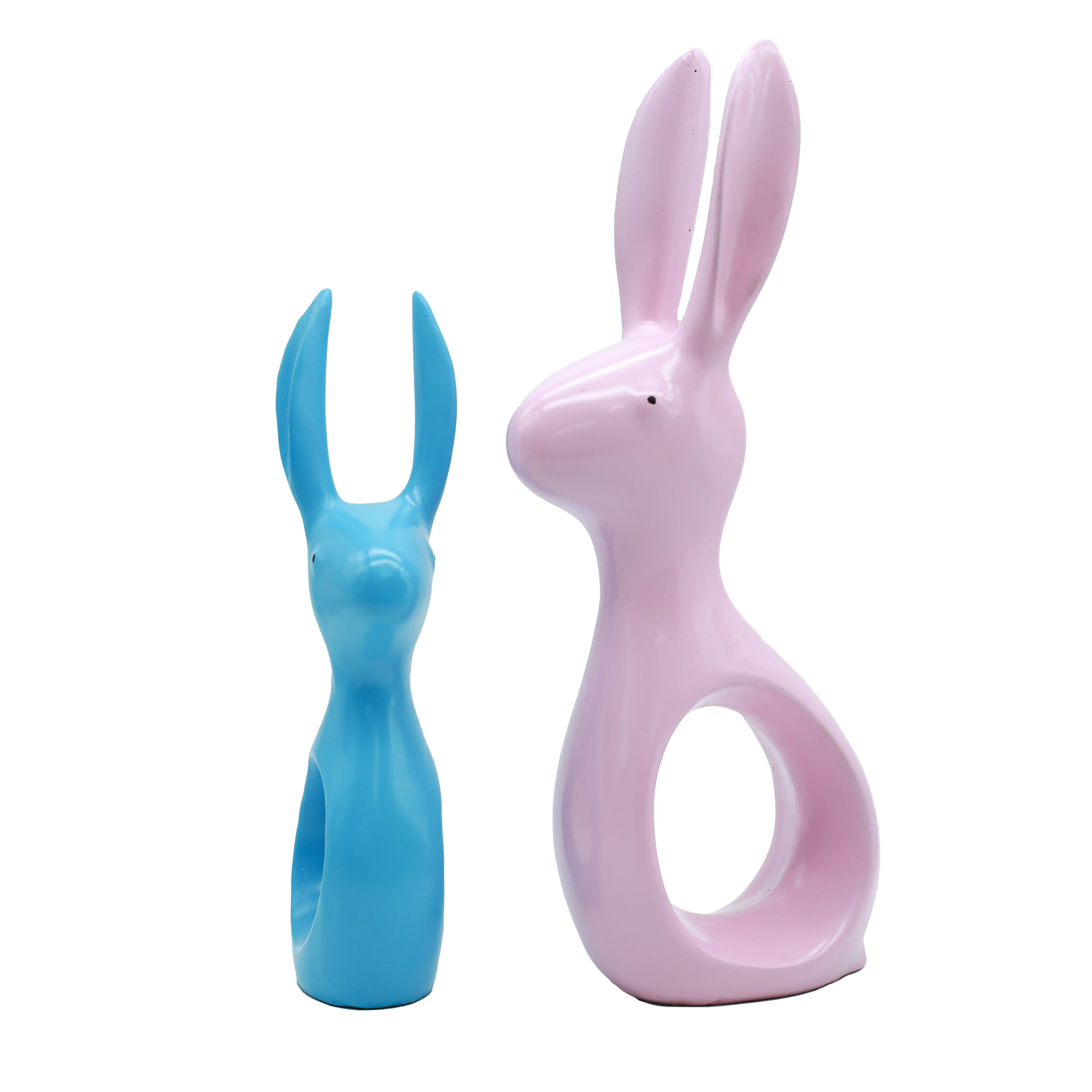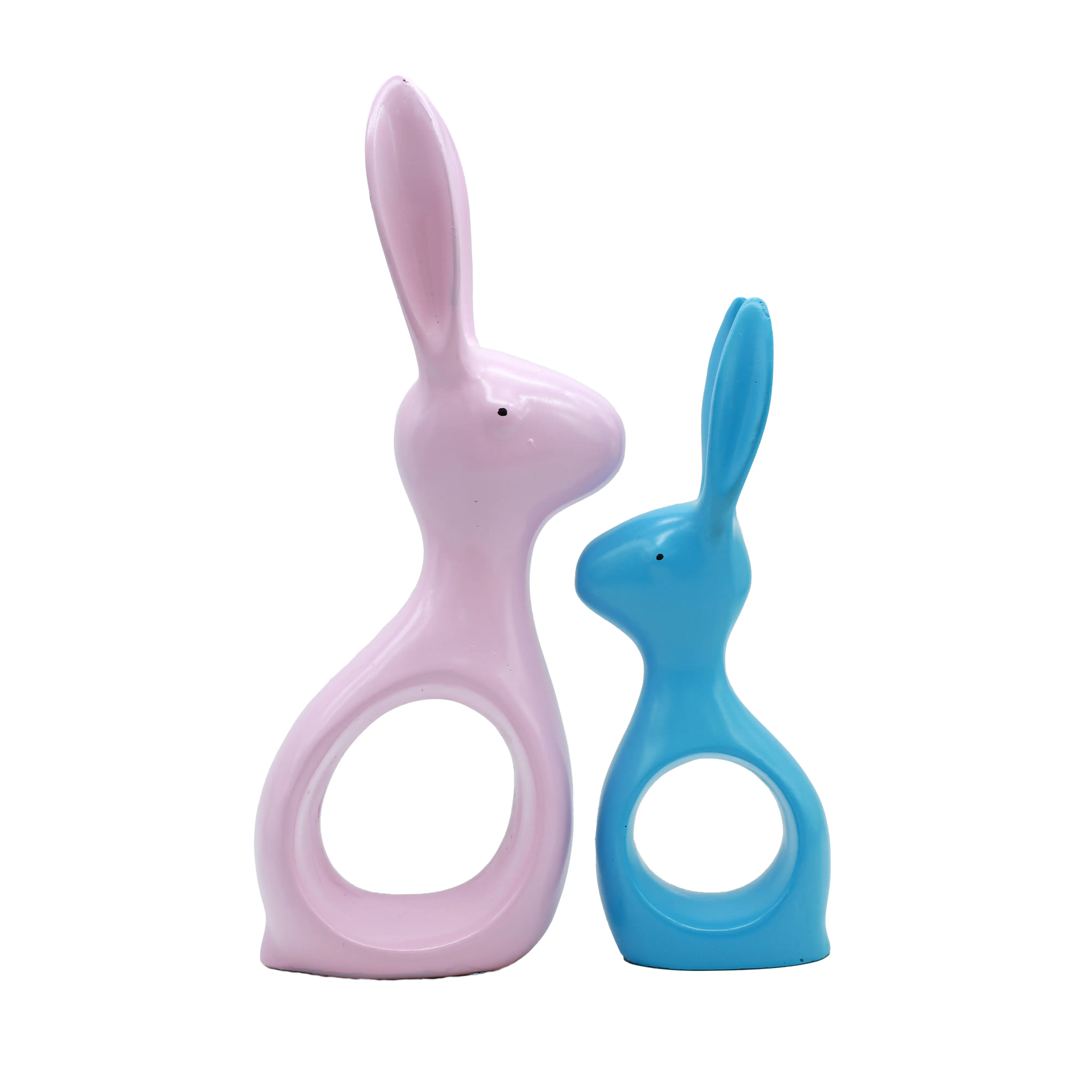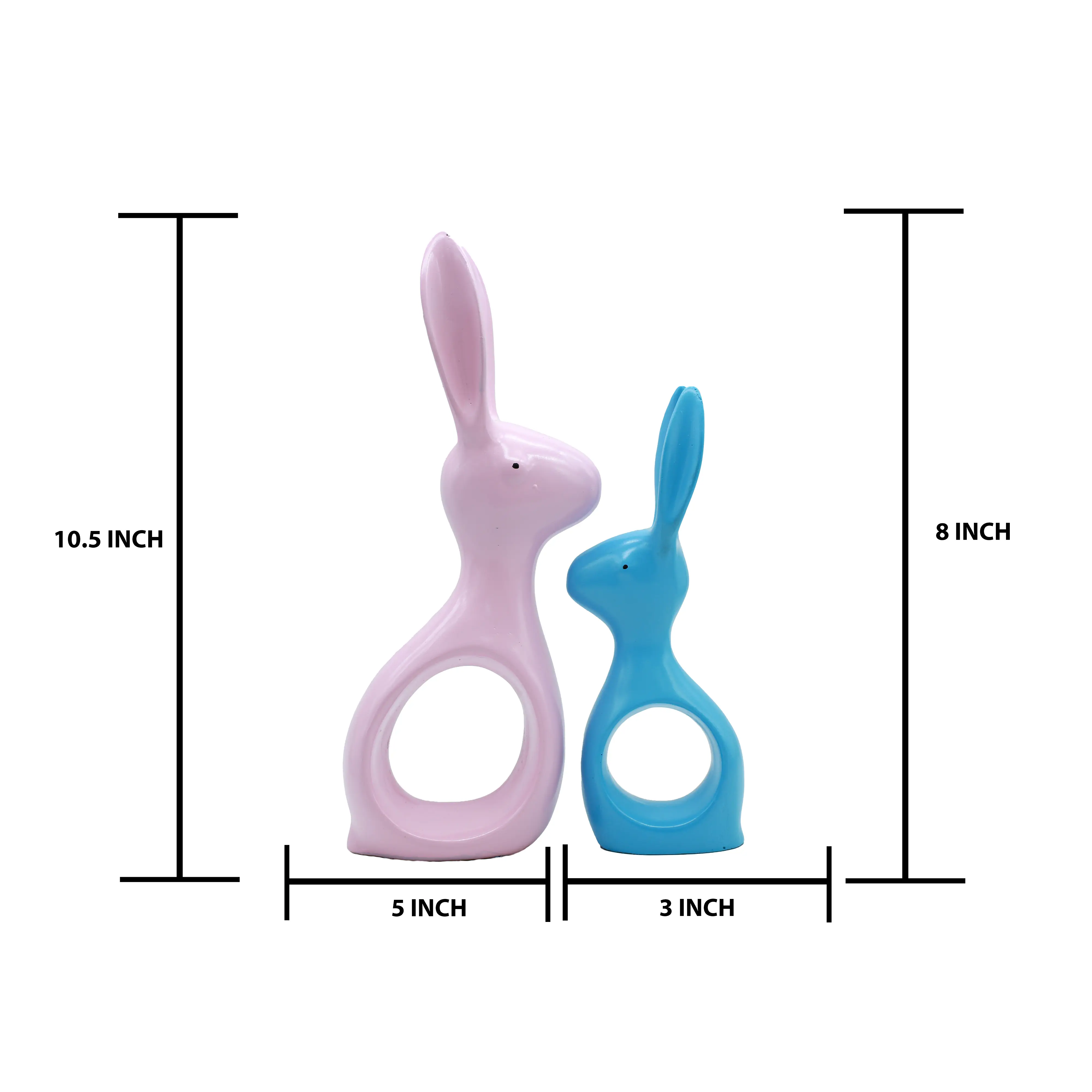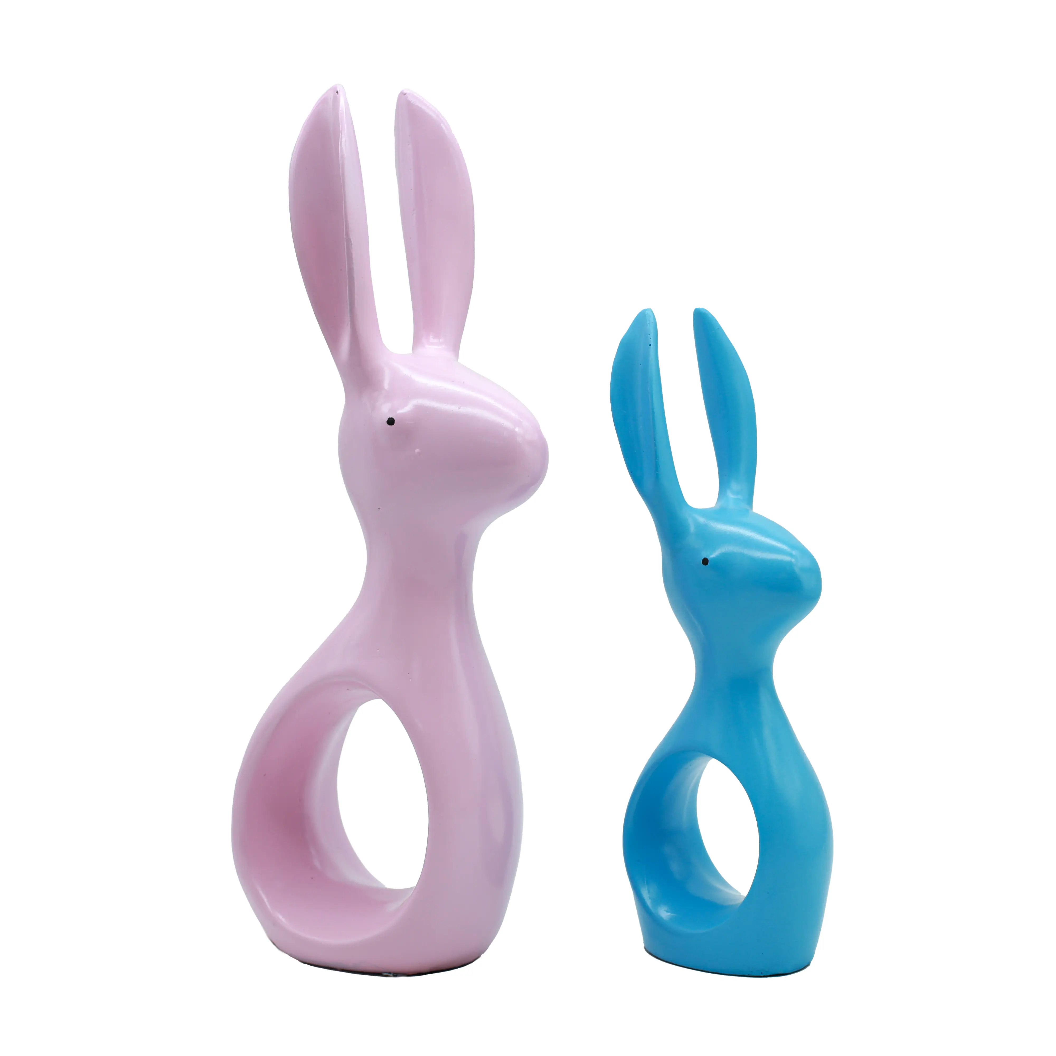 The Shape: The bodies of the rabbits curve around a central open circle. This "negative space" design element makes the statues feel airy and light, preventing them from looking bulky on a shelf.