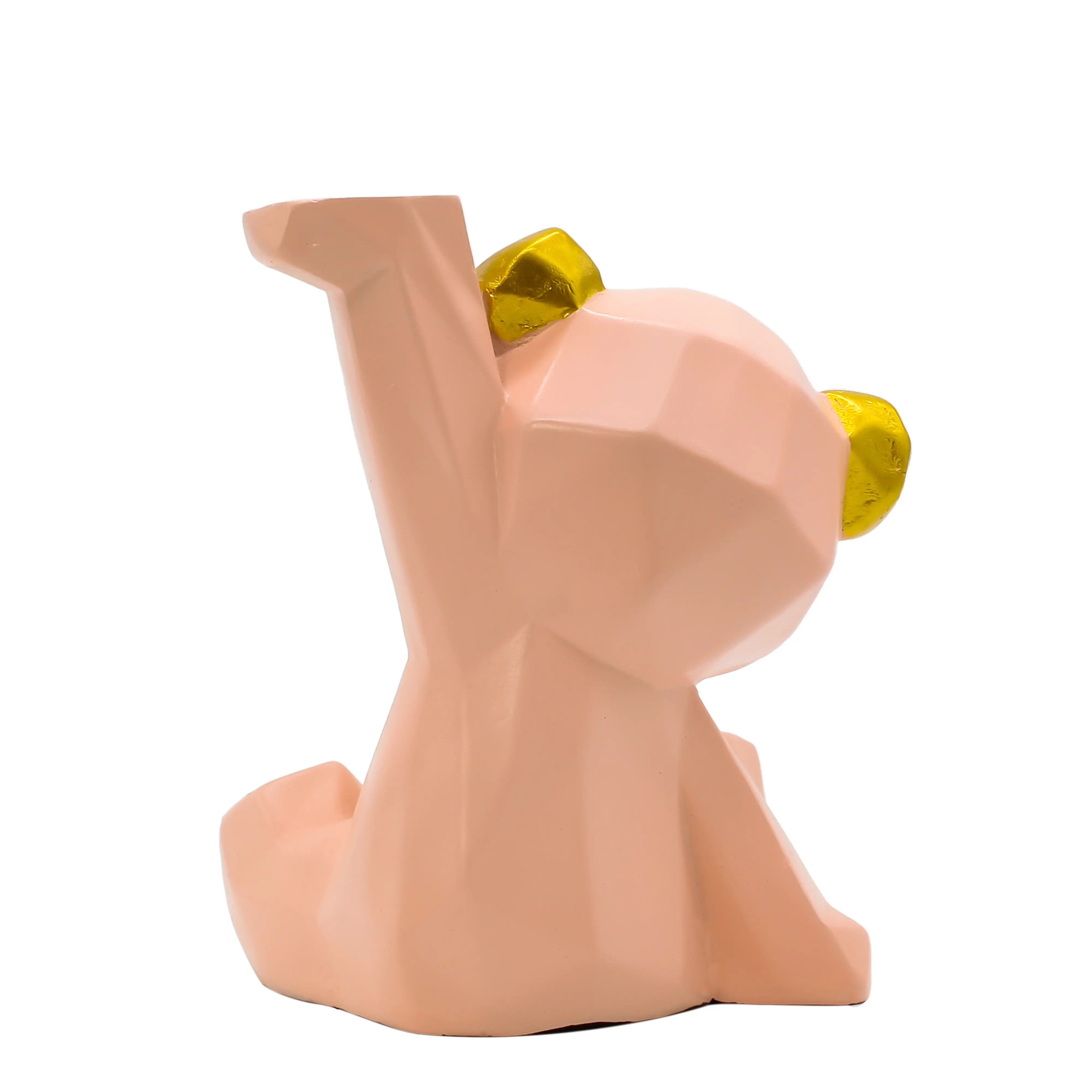 Add a soft touch of elegance to your space with this luxury pink geometric teddy bear resin showpiece. Featuring a modern faceted design with stunning gold accents, this decorative teddy bear is crafted from high-quality polyresin for durability and premium appeal. The pastel pink finish makes it perfect for contemporary, minimal, and luxury décor themes. Ideal for living rooms, bedrooms, kids’ rooms, offices, cafés, and tabletops, this teddy bear figurine instantly enhances any interior. Its artistic look and charming design also make it a perfect gifting option for birthdays, anniversaries, Valentine’s Day, baby showers, housewarming parties, and festive occasions. Lightweight, easy to clean, and visually appealing, this teddy bear décor piece is a stylish addition to any home or office setting.