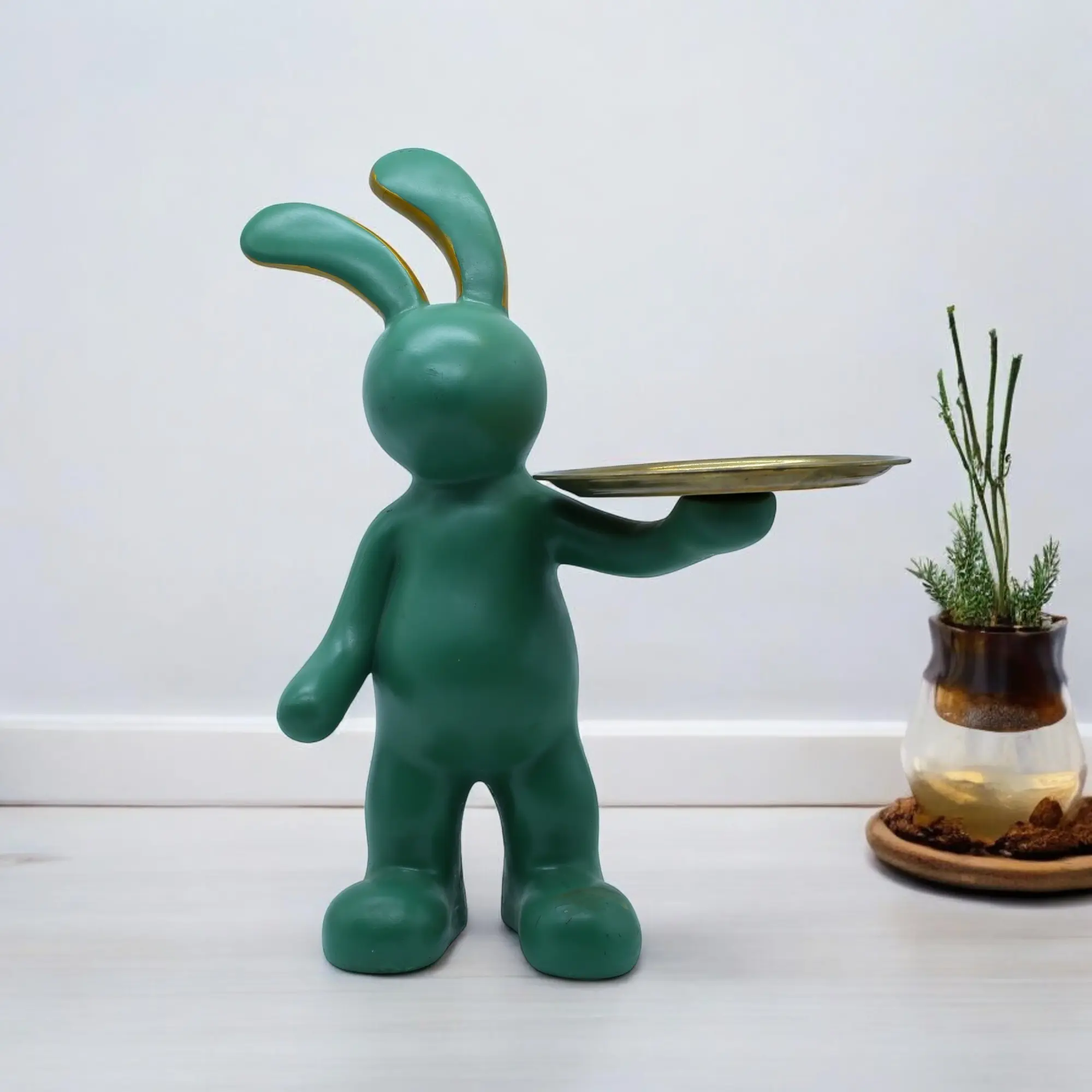 Enhance your space with this stylish Rabbit Tray Resin Showpiece, a perfect blend of modern design and functionality. Crafted from premium-quality resin, this decorative bunny figurine holds a sleek tray ideal for keeping keys, jewelry, coins, or small accessories. Its minimalist form and elegant finish make it a stunning décor accent for living rooms, bedrooms, offices, reception areas, and entryways. Lightweight yet durable, this resin rabbit tray is easy to place and maintain. The modern aesthetic complements contemporary and luxury interiors effortlessly. A thoughtful gifting option for housewarmings, birthdays, anniversaries, festive occasions, and corporate gifting, this showpiece adds charm, creativity, and practicality to any space. Made from premium-quality resin material Modern rabbit/bunny design with functional tray Smooth finish with elegant detailing Ideal for holding keys, coins, jewelry & accessories Lightweight, durable & long-lasting Perfect for home, office, entryway & table décor Easy to clean & maintain Complements modern, minimalist & luxury interiors Symbol of positivity & creativity Ideal for gifting & premium décor collections