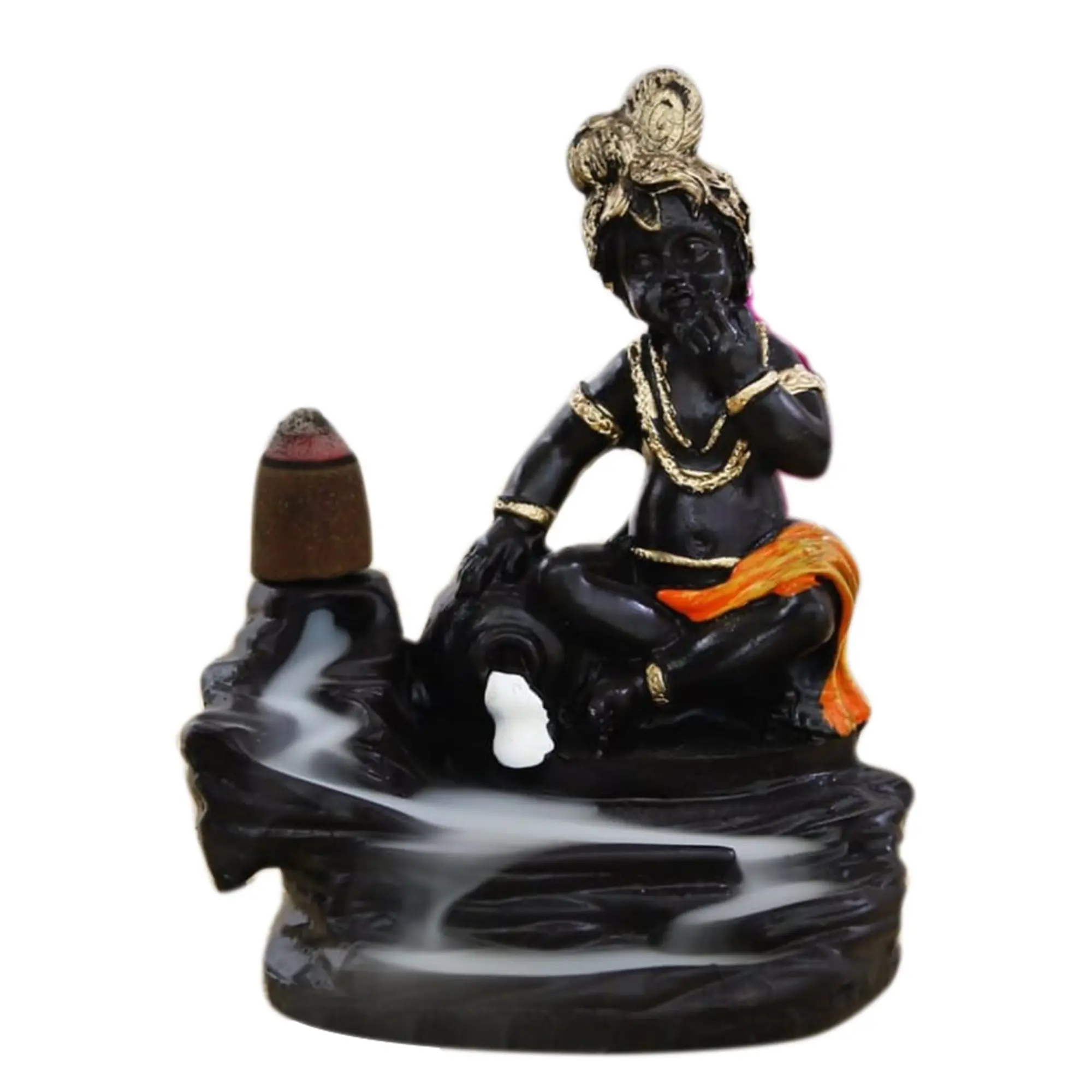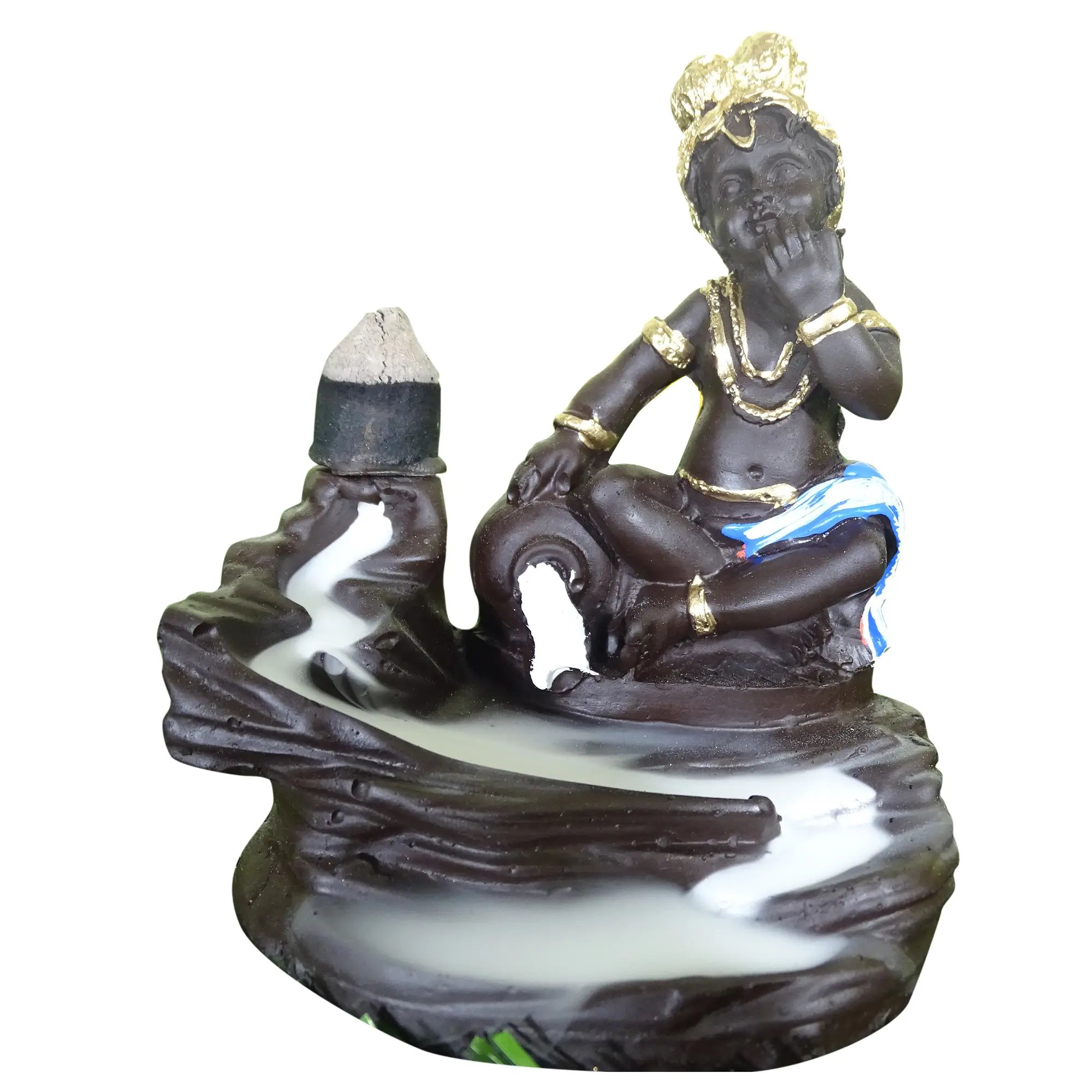 Celebrate the divine play (Leela) of Krishna with this durable and enchanting resin smoke fountain.