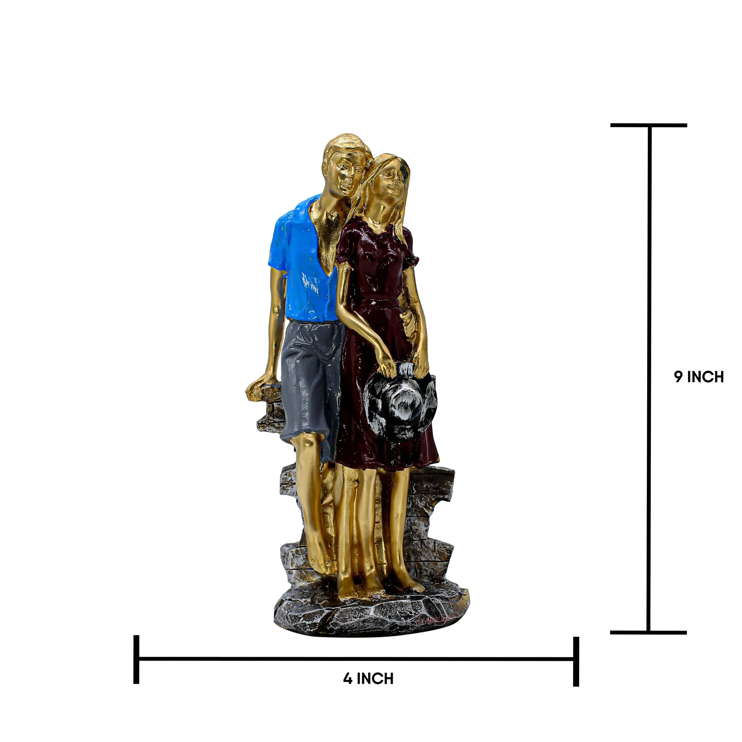 The Finish: To unify the colorful clothing, the skin of both figures is finished in a lustrous metallic gold. This artistic choice gives the statue a timeless, gallery-worthy appeal.