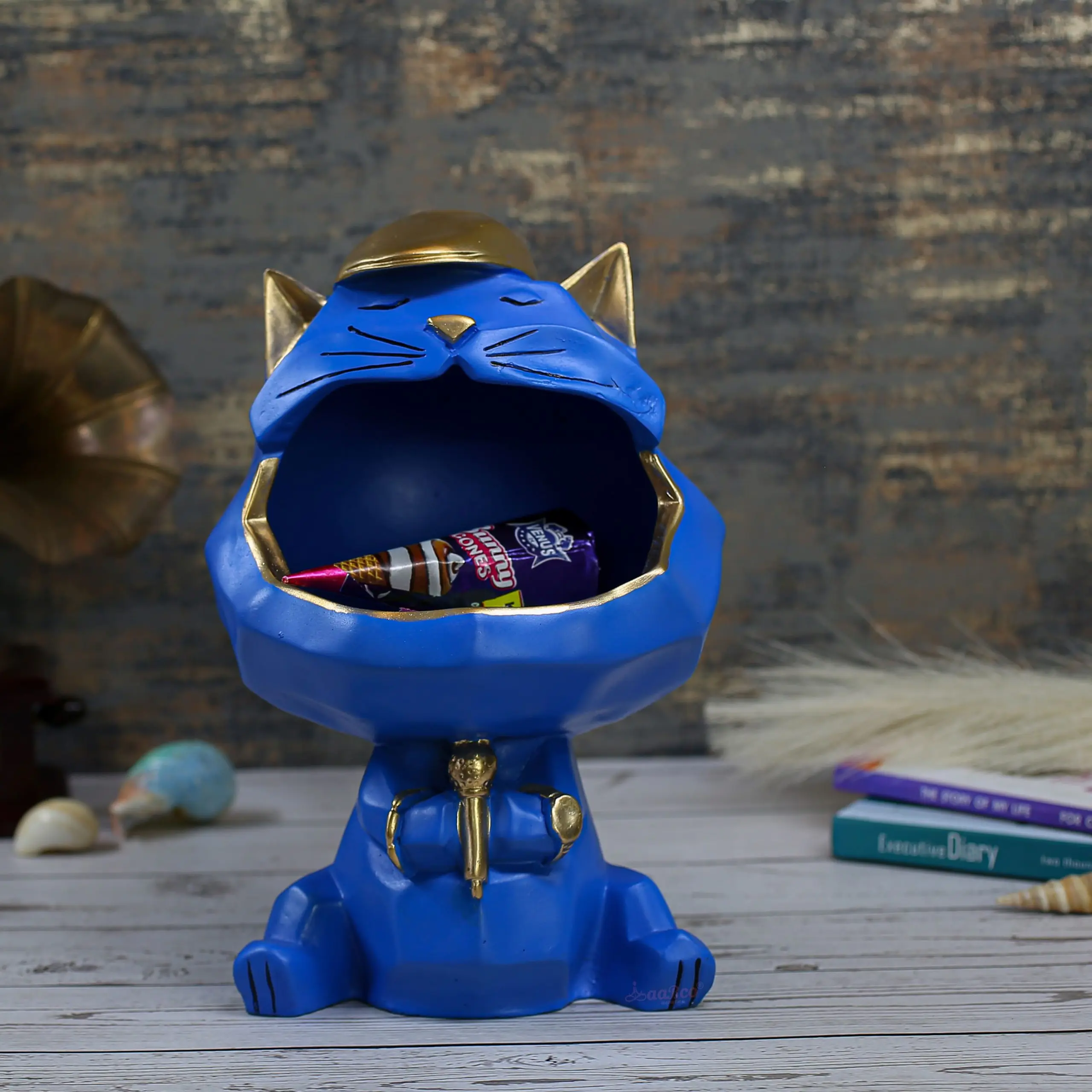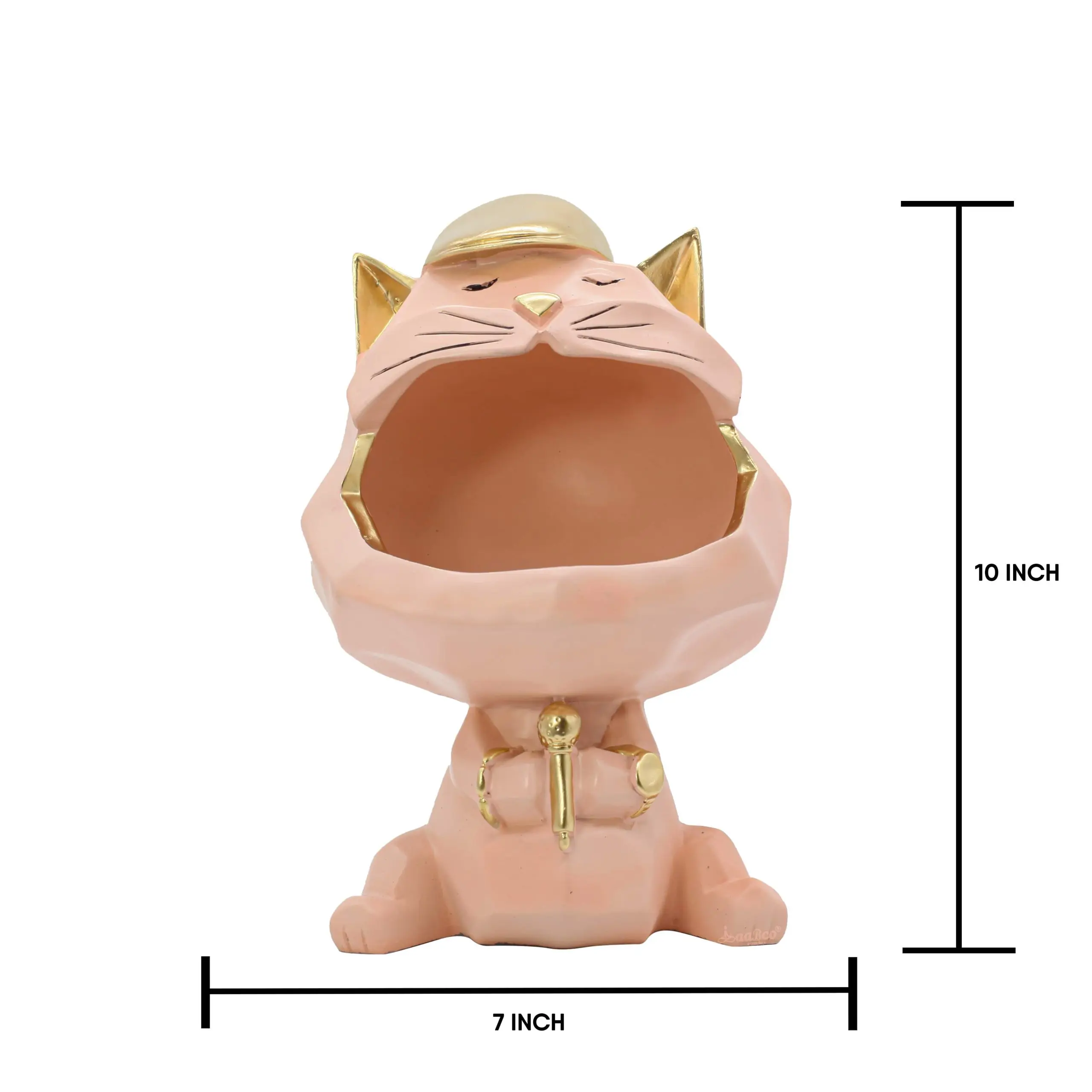 A Symphony of Style and Utility Bring a pop of personality to your interior with the Pink & Gold Singing Cat Storage Bowl. This isn't just a decorative statue; it’s a functional piece of art that solves the problem of clutter with a sense of humor. The design features a cool, geometric (low-poly) cat character, dressed in a jaunty gold cap and holding a microphone, belting out a tune. The oversized open mouth acts as a deep, secure bowl, perfect for holding the little things that usually get lost.