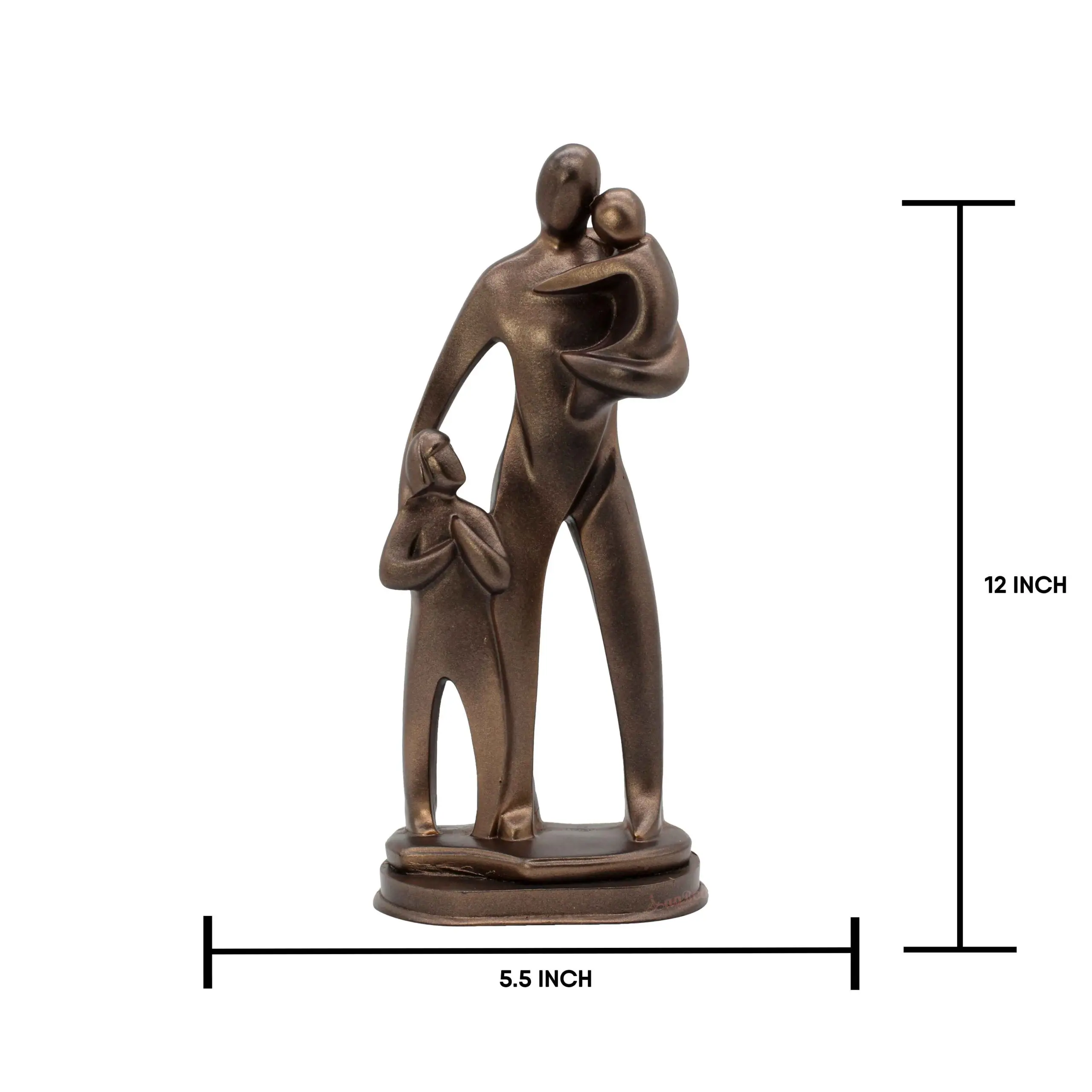 The Pillar of Strength: The Antique Bronze Resin Father & Kids Statue