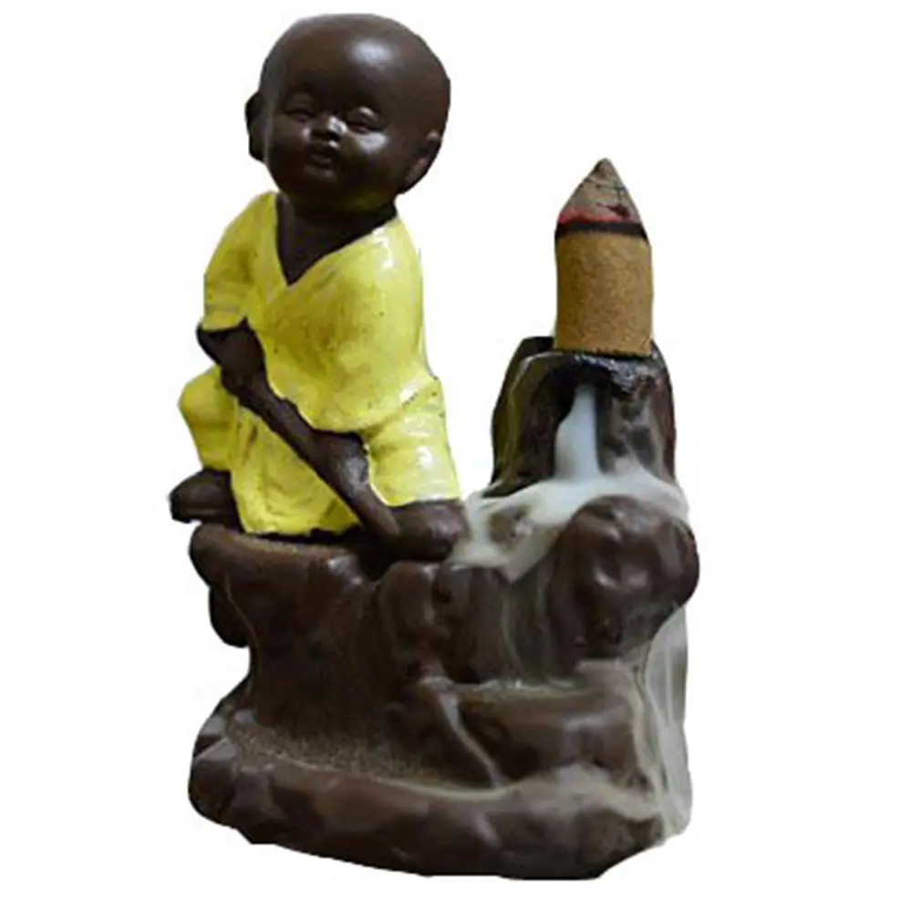 Bring a smile to your face and peace to your mind with the Yellow Robe Little Monk Resin Backflow Incense Burner. In the fast-paced modern world, this adorable "Little Monk" serves as a gentle reminder to approach life with the curiosity and joy of a child. Whether you call him a Baby Buddha, a Kung Fu Monk, or a Little Novice, his presence is sure to brighten any room.