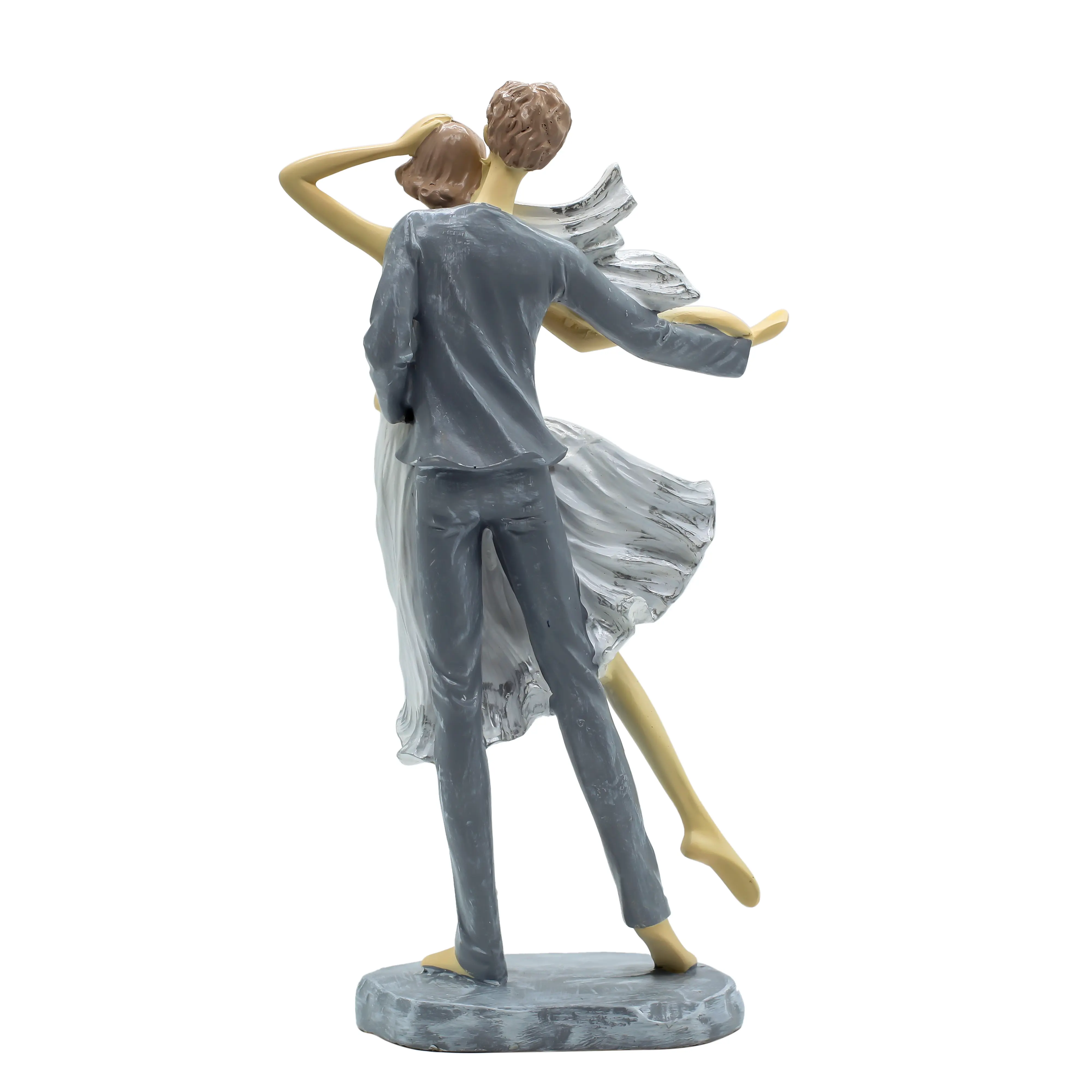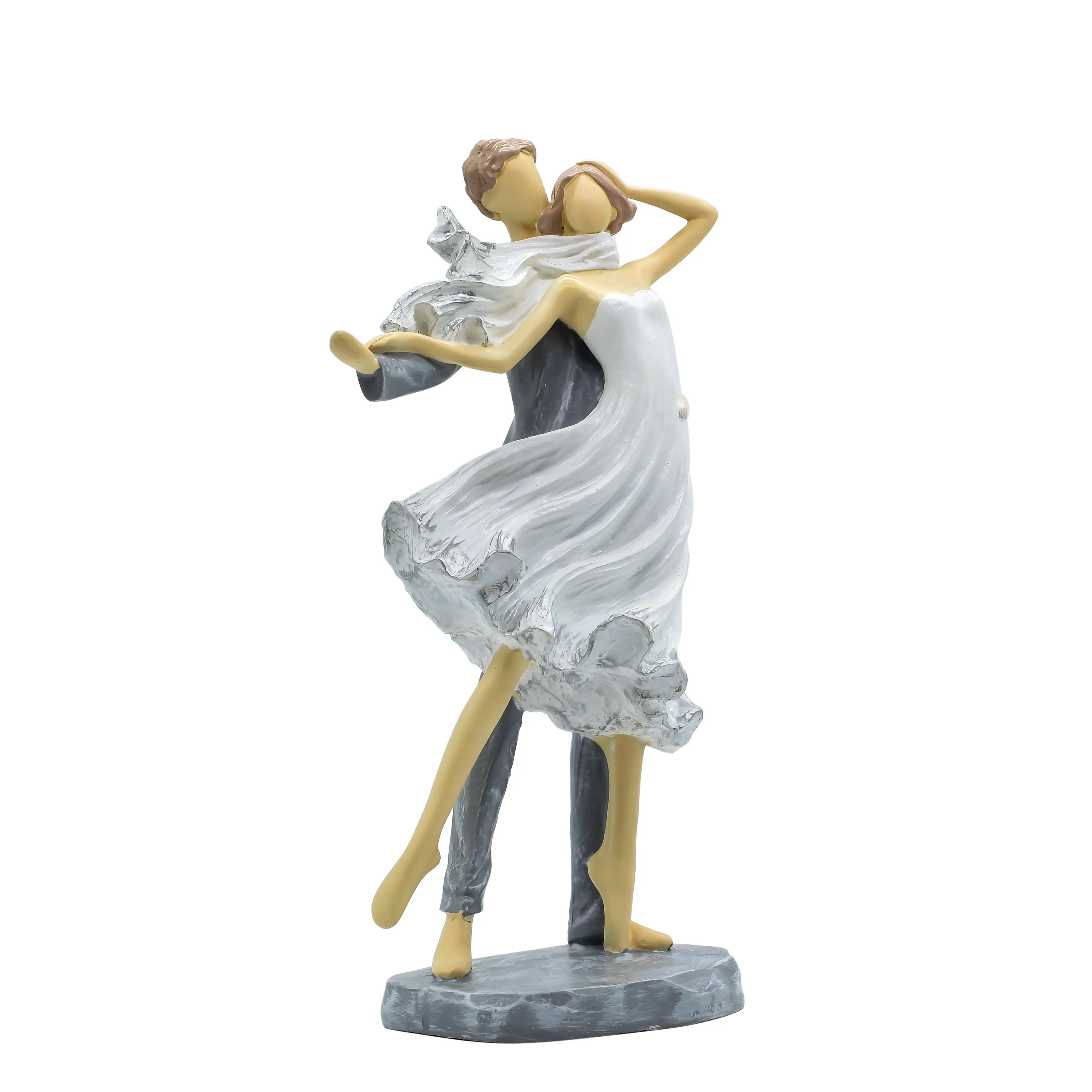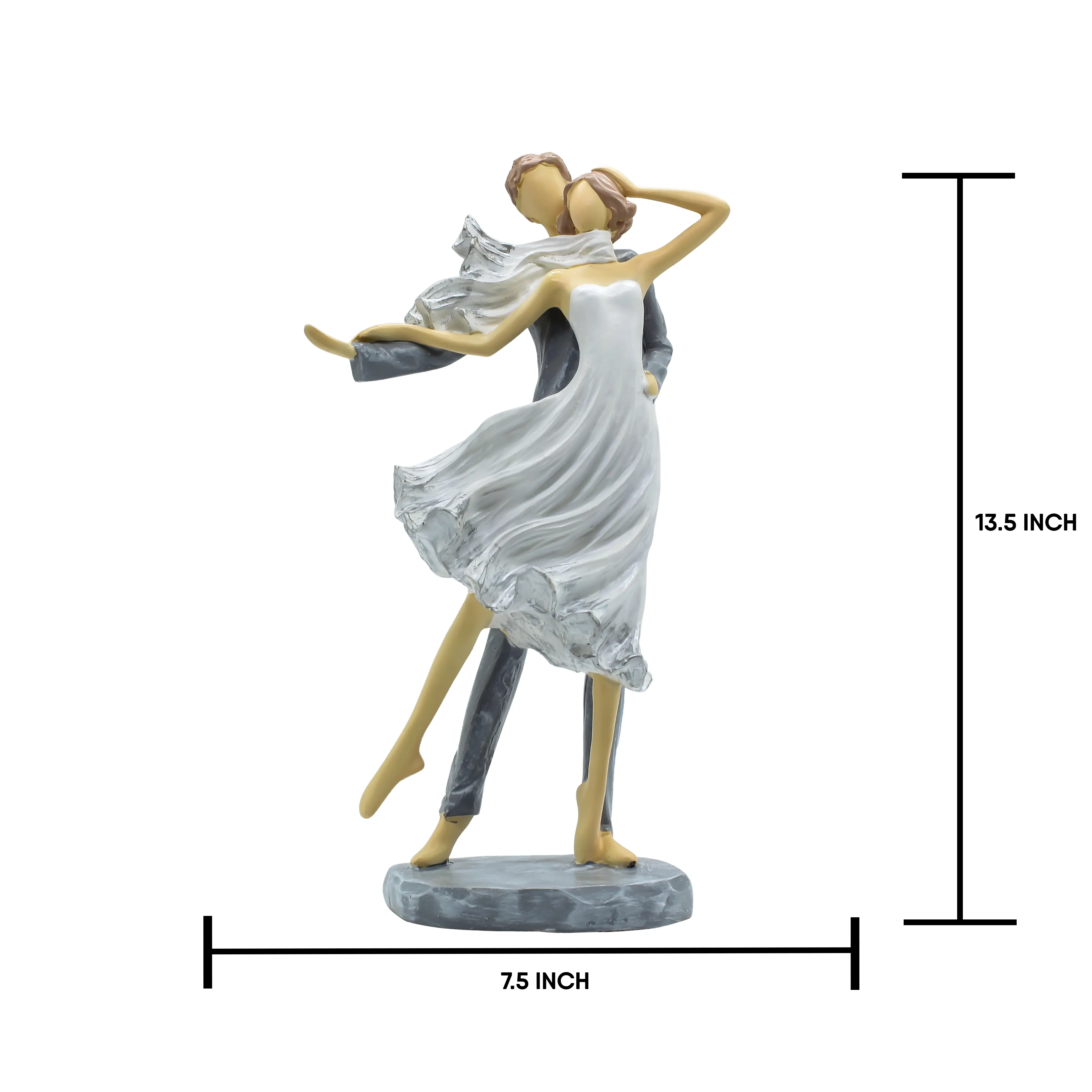 Bring the elegance of the ballroom into your home with our Romantic Dancing Couple Statue. This handcrafted showpiece is a celebration of love in motion. The sculpture freezes a beautiful moment where a couple is lost in the rhythm of a dance. The woman’s White Dress creates a stunning visual effect with its realistic ruffles and "windblown" appearance, while the man supports her firmly in a stylish Grey Suit. The artistic "faceless" design allows you to project your own emotions onto the figures, making it a universal symbol of romance. Standing on a sturdy grey stone-textured base, this figurine is stable and durable. Whether displayed on a mantelpiece, a bedside table, or a wedding cake table, it radiates happiness and elegance. It’s the perfect way to say "I want to dance through life with you."