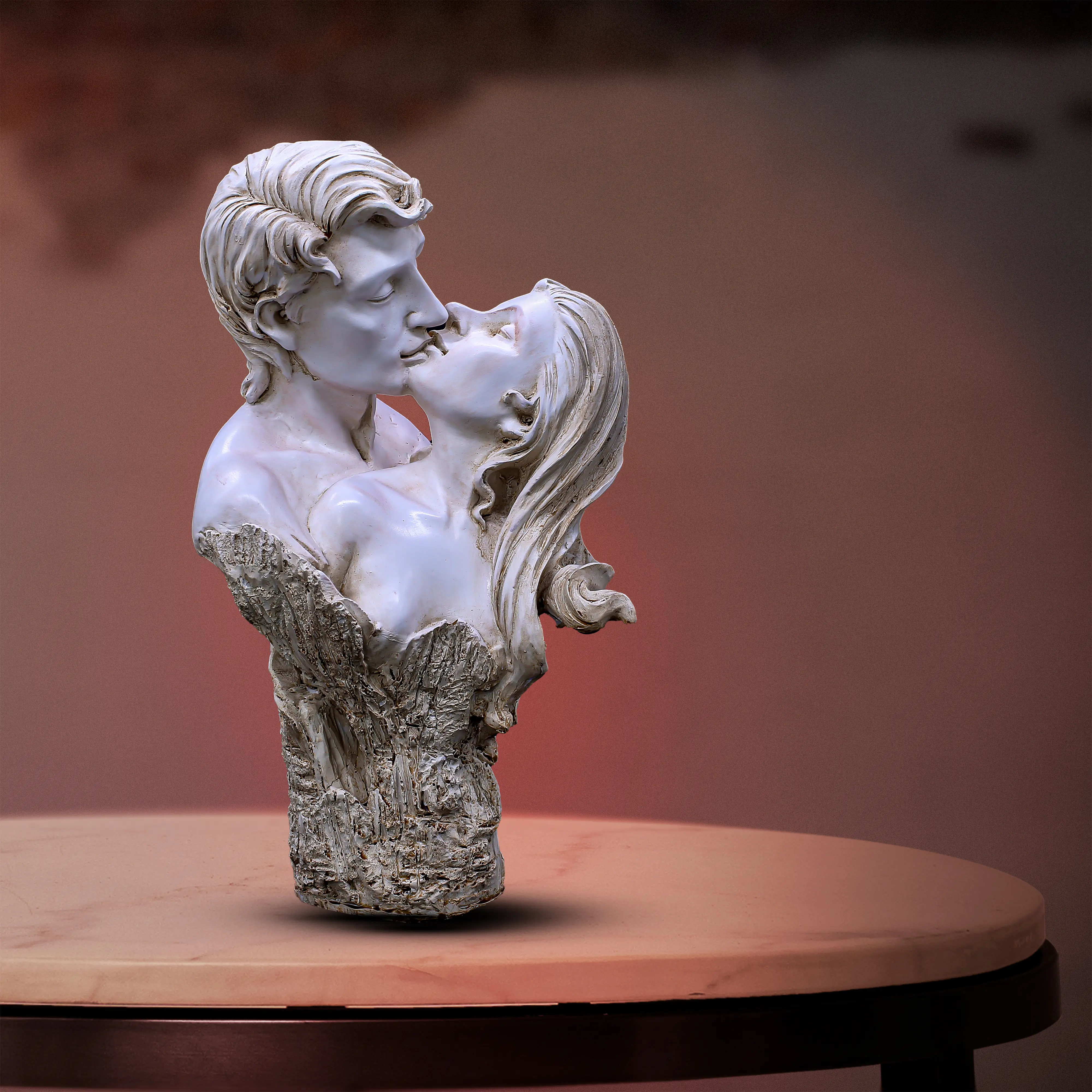 The Perfect Romantic Accent & Gift This kissing couple bust is perfectly scaled to make a statement without overwhelming a space. Place it on your living room mantel to create a warm atmosphere, on a bedroom dresser for a daily reminder of love, or on a bookshelf amongst your favorite romantic novels. It also solves the dilemma of finding a meaningful and lasting gift. Whether for a wedding, a milestone anniversary, Valentine's Day, or an engagement, this statue is a thoughtful and sentimental present that expresses deep love and devotion, sure to be treasured by the recipient forever.