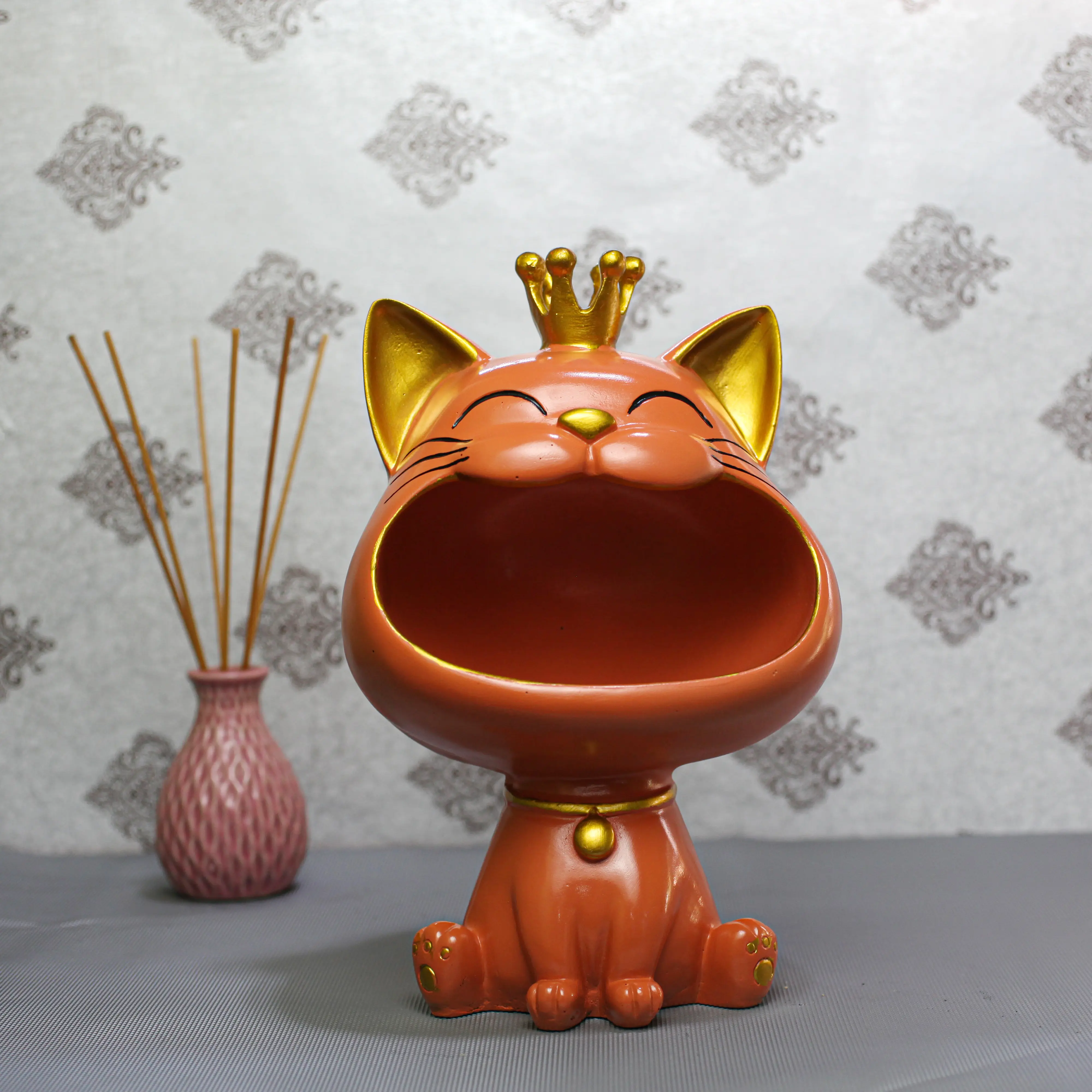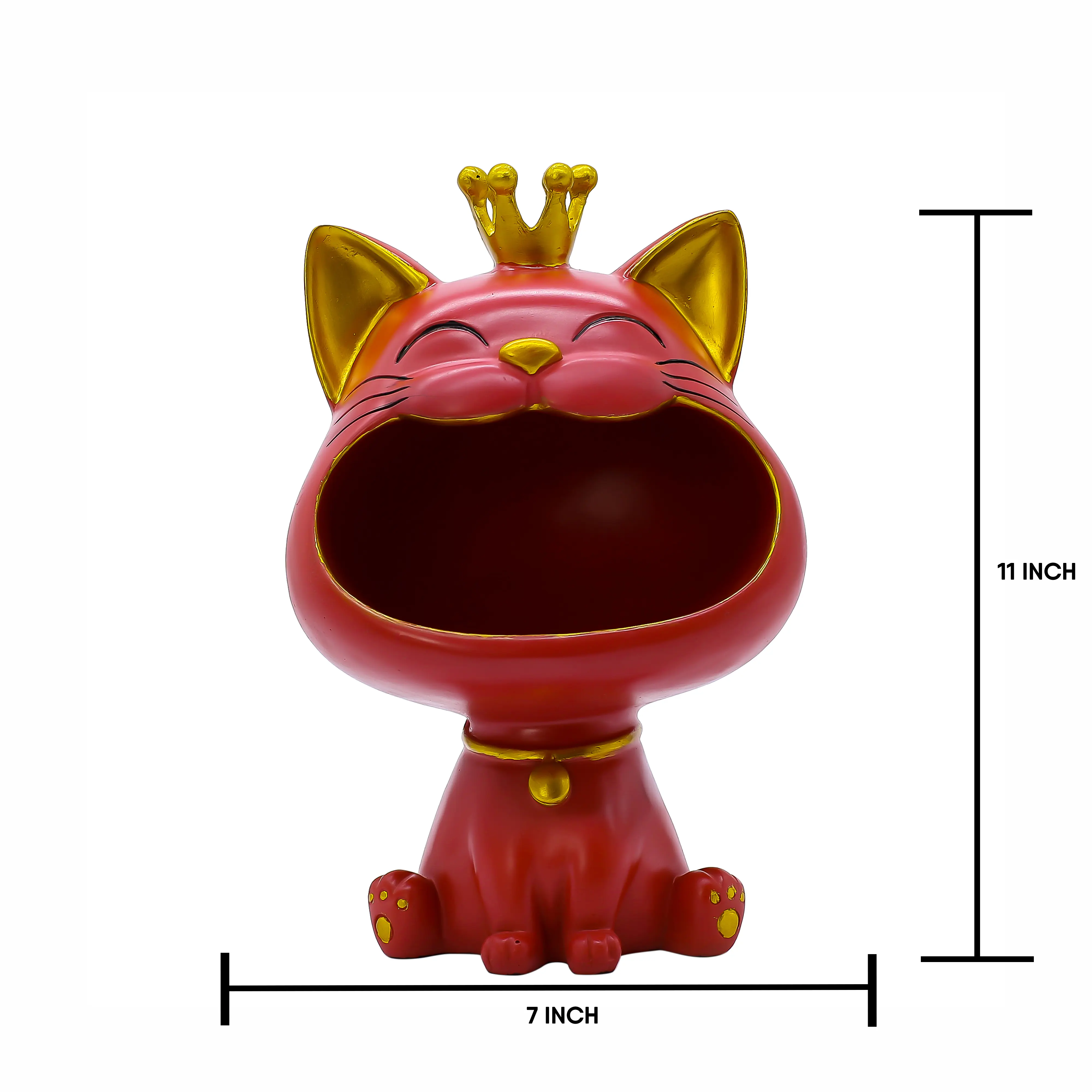 Bring elegance, functionality, and positive energy into your space with the Royal Crown Lucky Cat Resin Storage Showpiece by Urban Kraft. Inspired by the traditional Maneki Neko, this decorative lucky cat symbolizes wealth, good luck, success, and happiness. Crafted from premium polyresin, it features a rich red finish with gold detailing and a royal crown that adds a luxurious touch. The spacious open bowl design allows it to be used as a planter, candy holder, key organizer, or desk storage container. Perfect for home décor, office desks, shop counters, reception areas, and cafés, it enhances interiors while attracting prosperity. Durable, lightweight, and easy to maintain, this lucky cat showpiece also makes an excellent gift for Diwali, housewarming, business inaugurations, and corporate gifting. Premium Polyresin Lucky Cat Storage Showpiece Symbol of Wealth, Prosperity & Good Luck Multi-Purpose Use: Planter, Candy Bowl, Key Holder, Organizer Ideal for Home, Office, Shop & Reception Decor Vastu & Feng Shui Friendly Décor Item Elegant Red & Gold Finish with Royal Crown Durable, Lightweight & Easy to Clean Perfect for Diwali, Housewarming & Corporate Gifts Compact Design for Tables, Counters & Shelves Crafted with Fine Detailing & Premium Finish