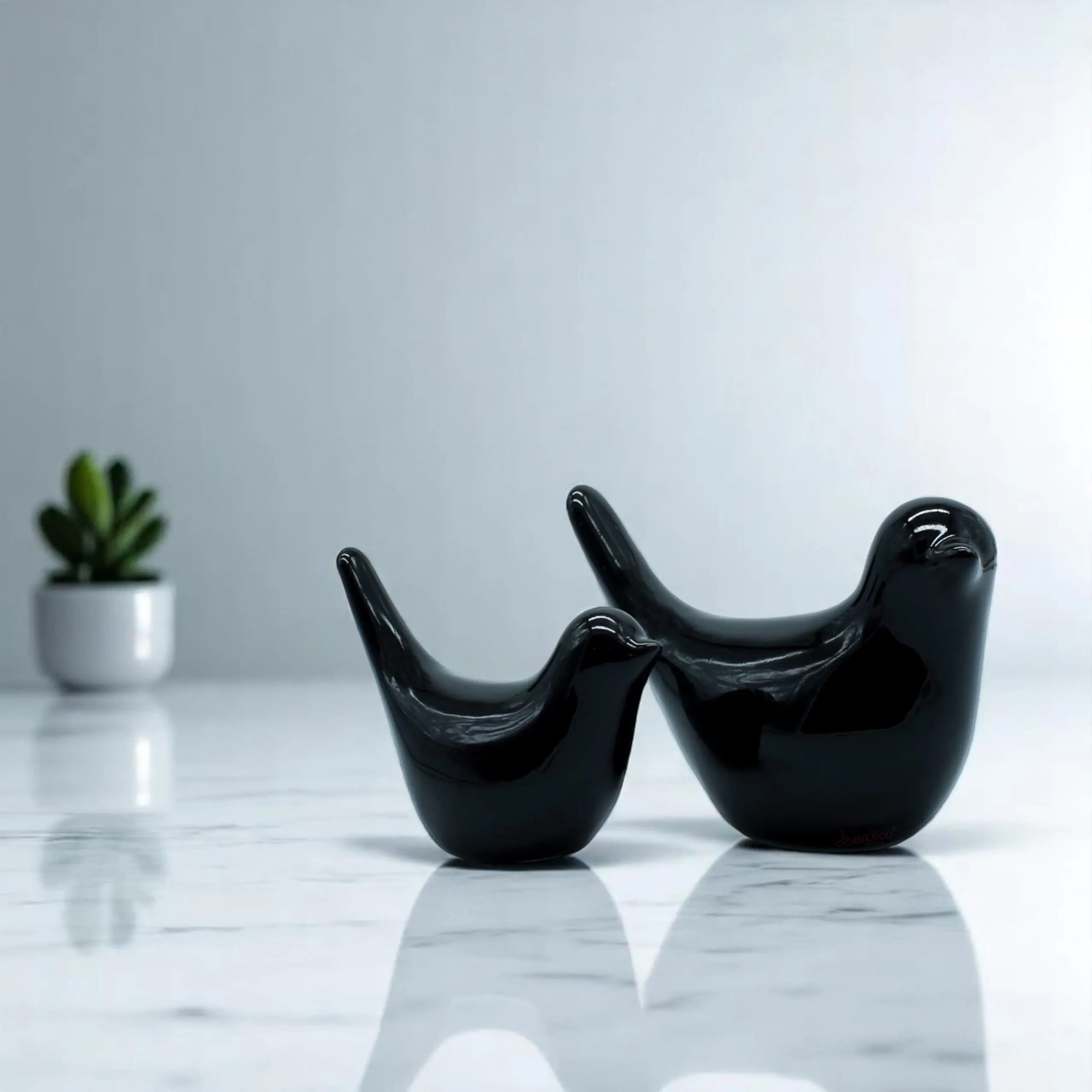 Elevate your home styling with the Set of 2 Glossy Black Ceramic Bird Figurines. In the realm of modern interior design, animal motifs abstracted into smooth forms are a timeless trend. This pair captures that aesthetic perfectly, offering a sophisticated way to bring nature indoors without the visual clutter of realistic detailing.