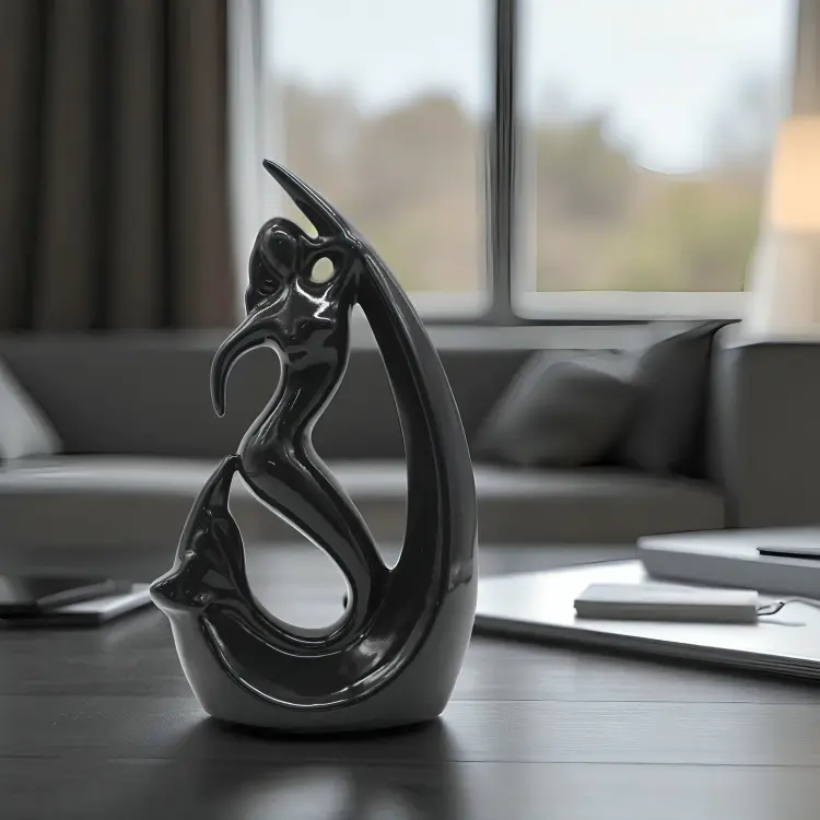 Exquisite Ceramic Artistry Quality is paramount in minimalist decor. These figurines are made from high-grade ceramic that feels substantial and cool to the touch. The defining feature is the Mirror-Like Gloss Finish. As seen in the images, the jet-black glaze is incredibly reflective, giving the statues a liquid-metal appearance. This finish ensures they don't just sit on a shelf; they interact with the lighting in your room, shimmering during the day and glowing under lamp light at night.