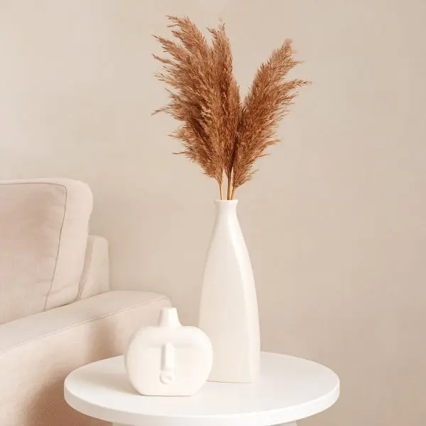 Exquisite Ceramic Craftsmanship Quality meets aesthetics in this duo. Made from solid, high-fired ceramic, these vases have a premium weight and stability. The defining feature is the Matte Cream Glaze. Unlike stark white or shiny surfaces, this soft beige/cream tone absorbs light rather than reflecting it. This creates a stone-like, earthy appearance that feels warm, inviting, and incredibly sophisticated.