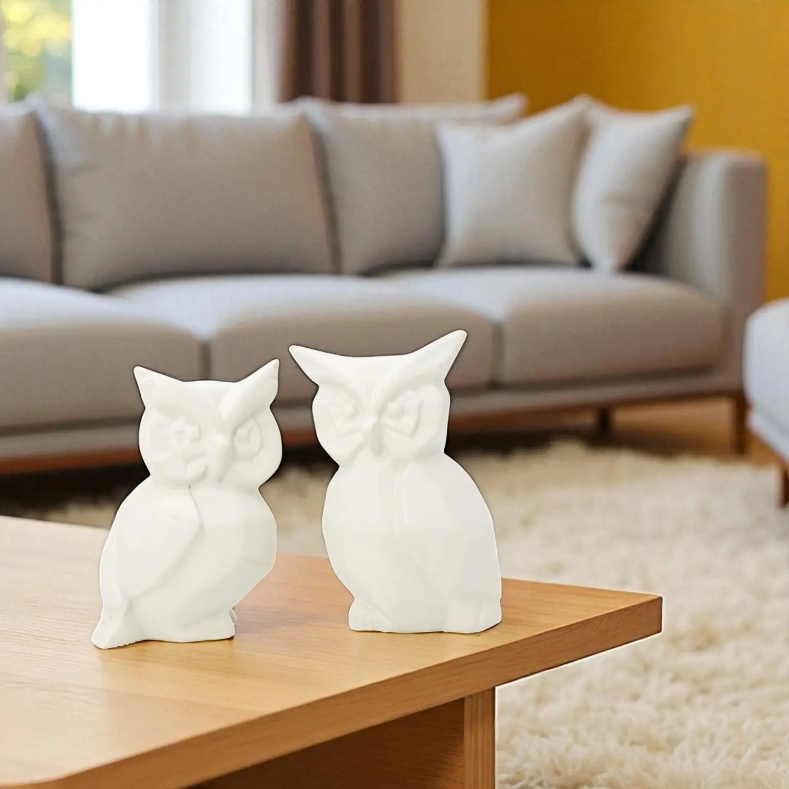 Exquisite Ceramic Craftsmanship While they look like futuristic sculptures, these owls are grounded in traditional quality. Molded from solid ceramic, they offer a substantial weight and a premium feel. The Matte White Glaze is key to their appeal. It eliminates glare, allowing the ambient light in your room to cast soft shadows on the geometric facets, creating depth and visual interest from every angle.