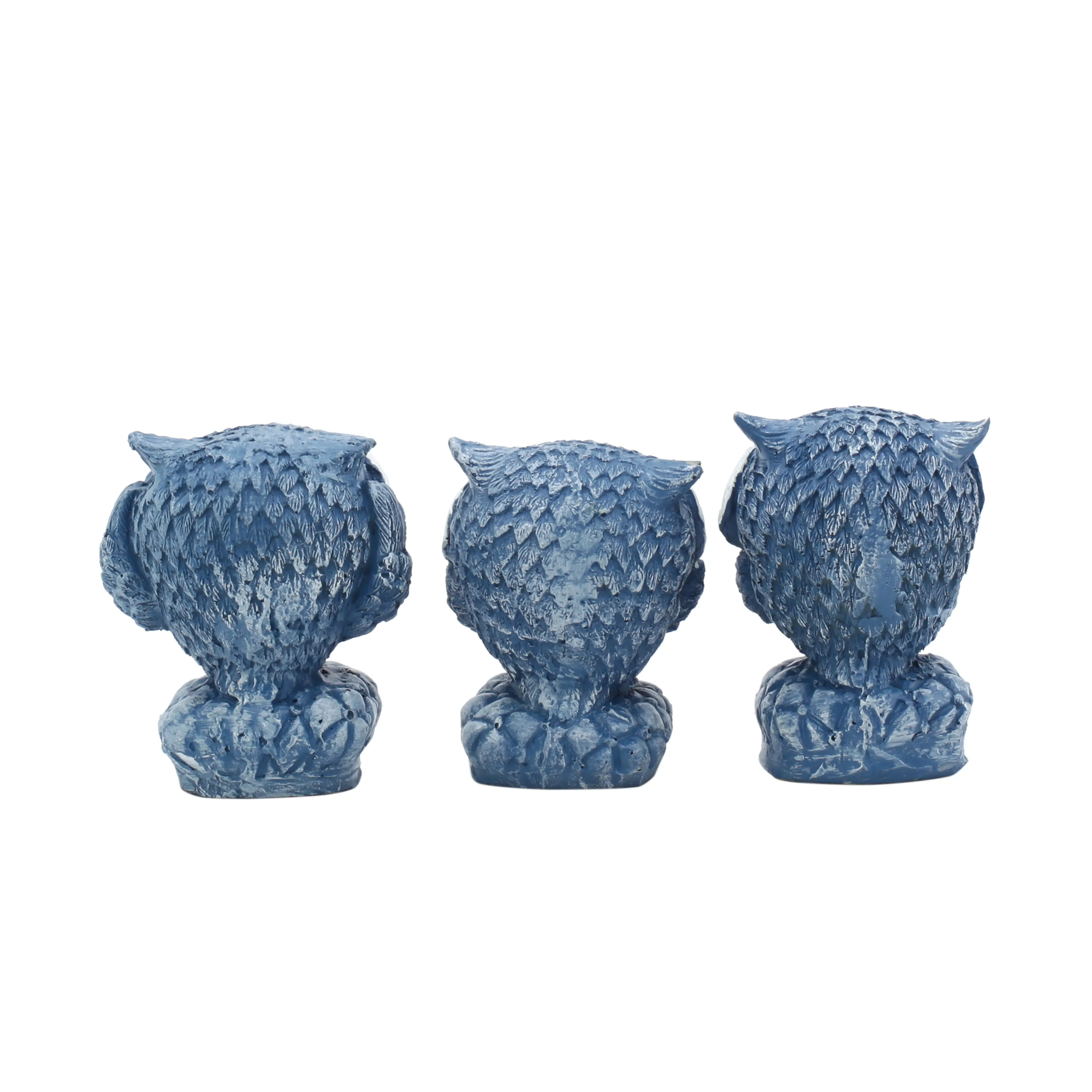 A Hoot of Wisdom: The Blue 'See, Hear, Speak No Evil' Owl Trio