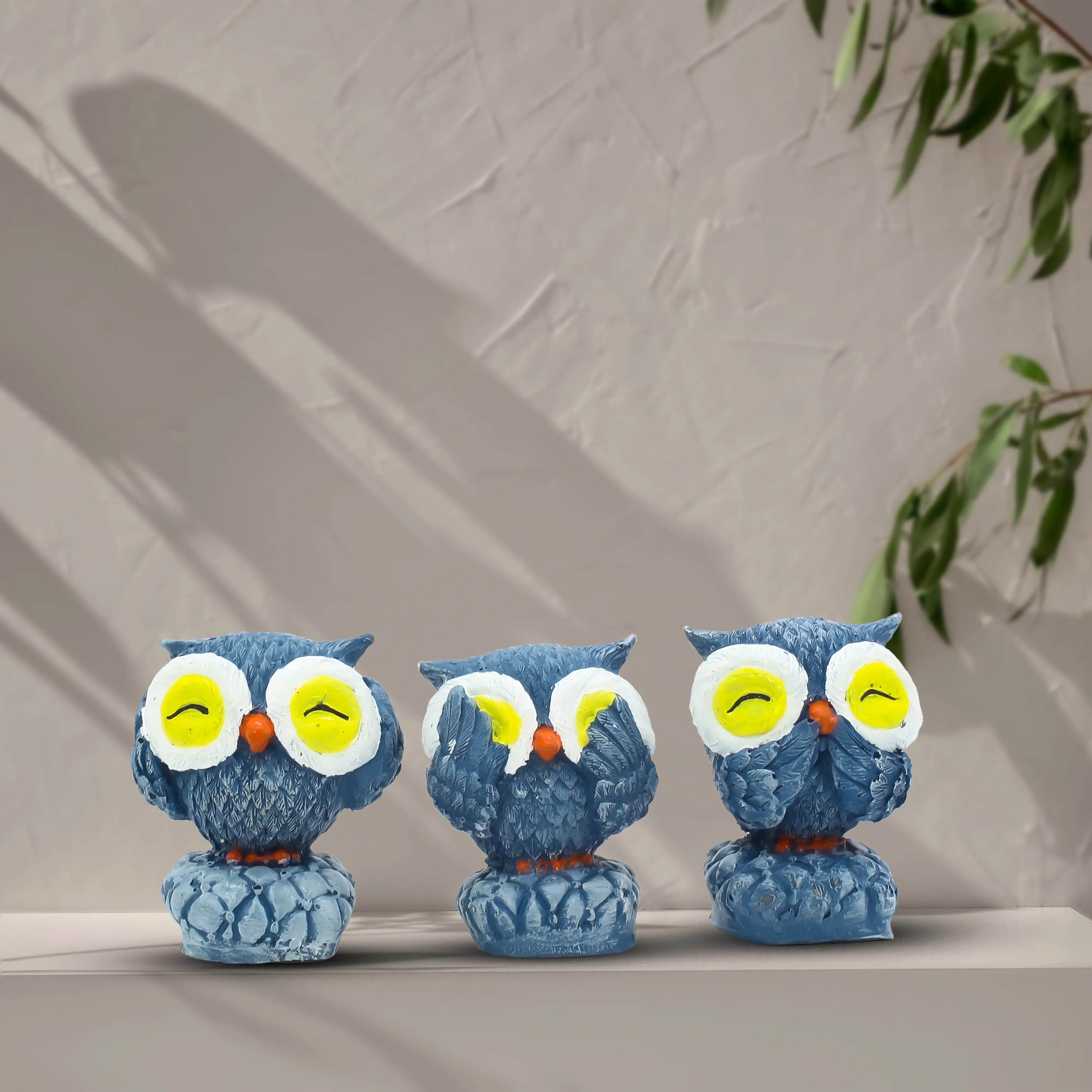 Elevate your home decor with a touch of whimsical philosophy. Our Premium Set of 3 Blue Wise Owl Statues is a charming reinterpretation of a timeless symbol, crafted to bring both visual interest and positive energy to your space.