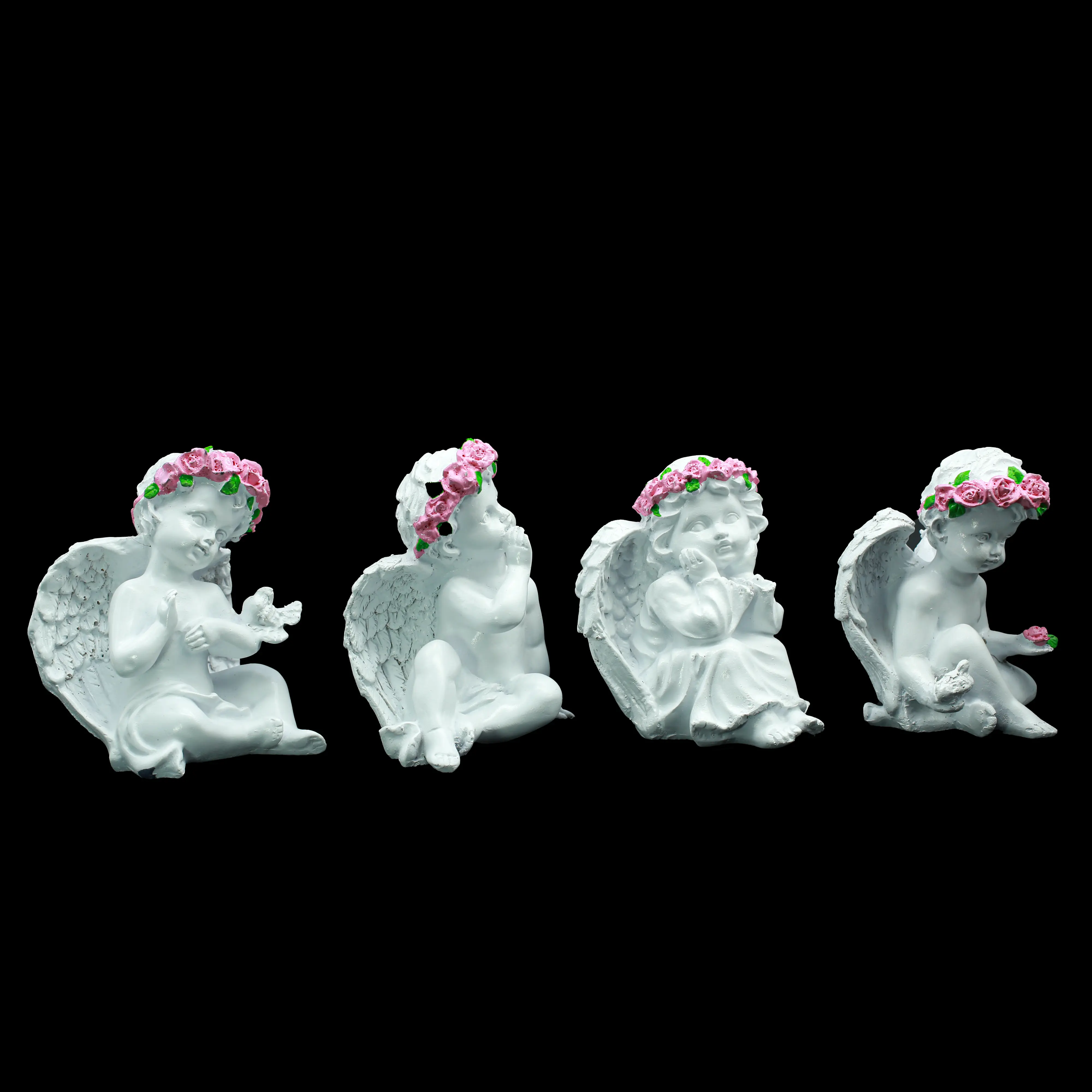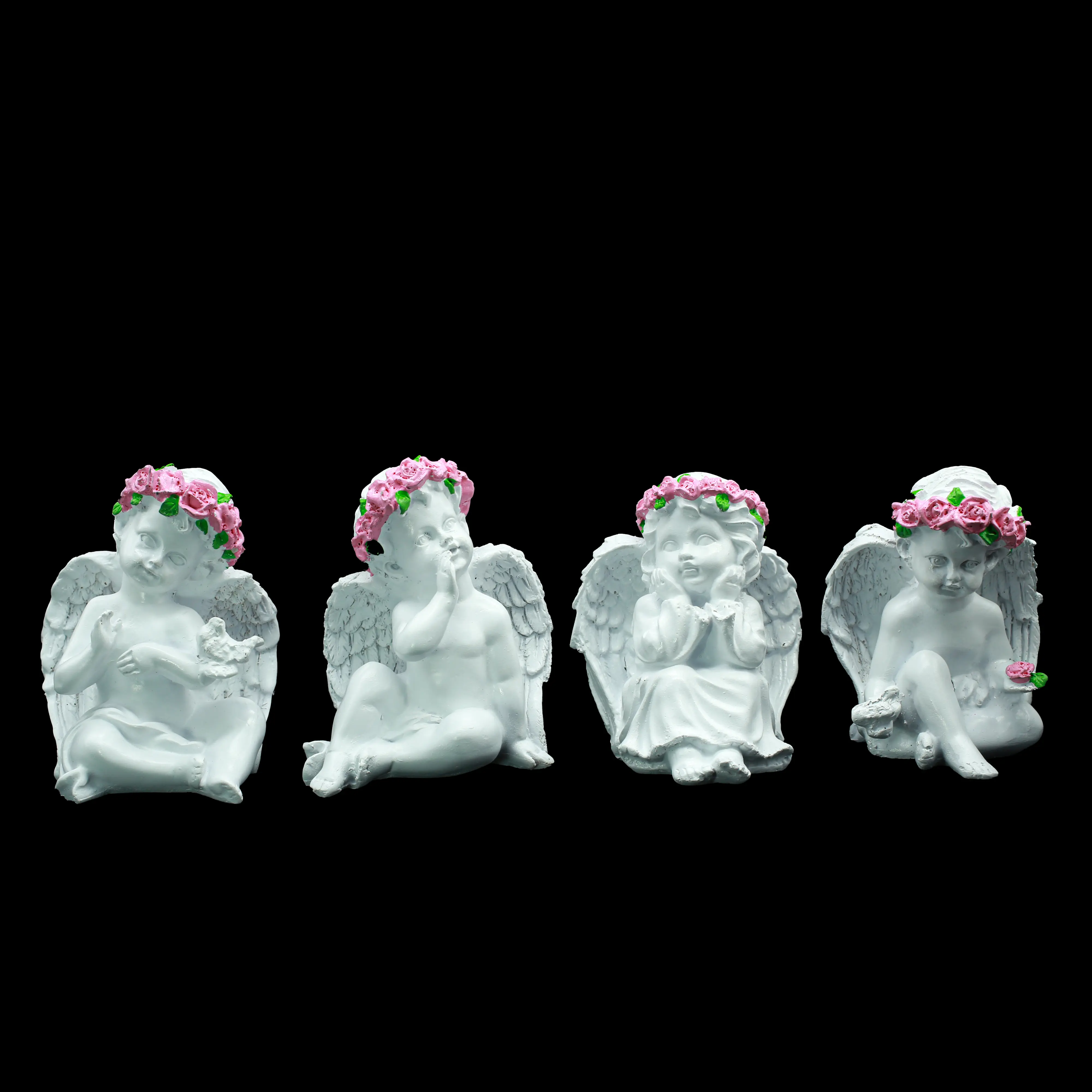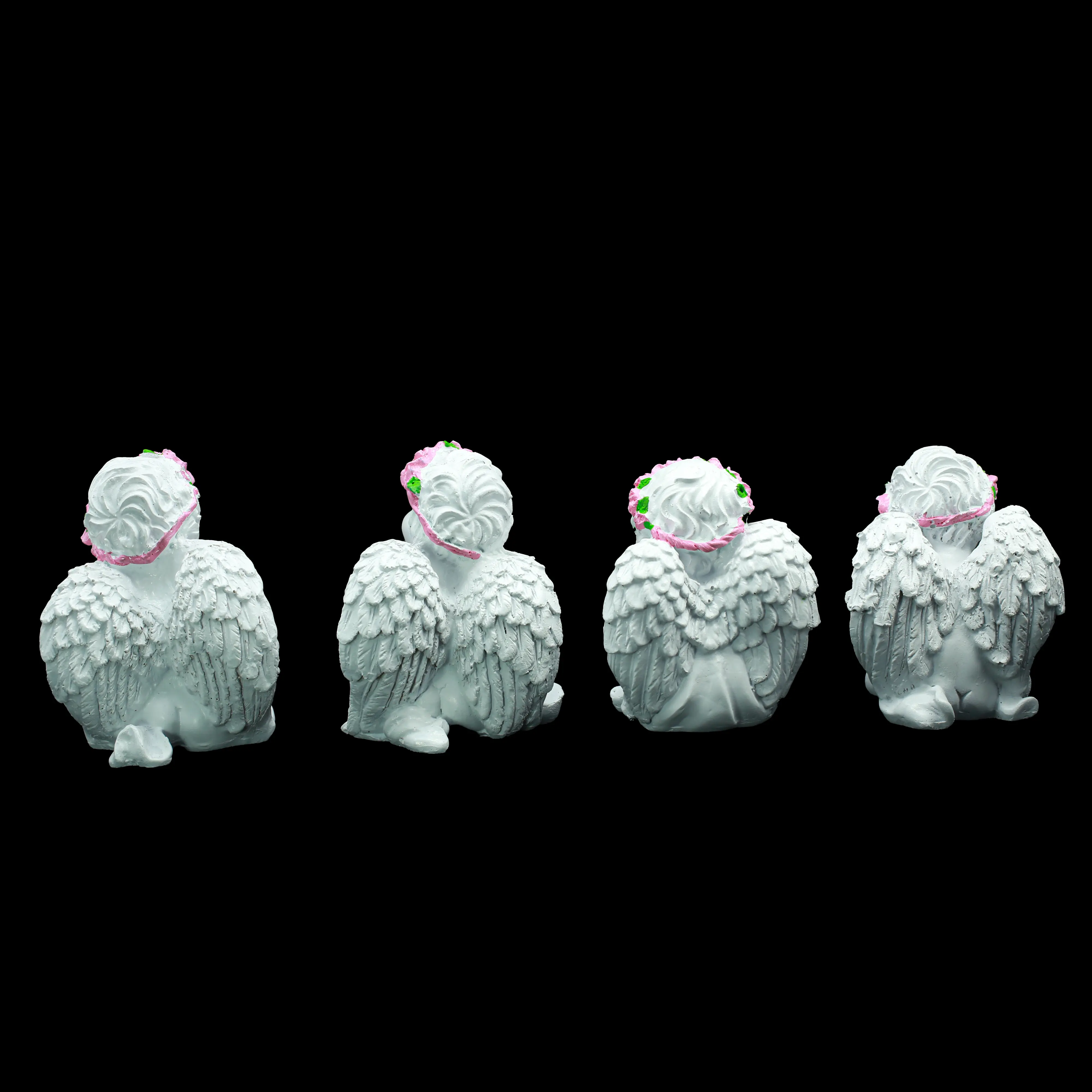 Angels are often depicted as solemn guardians, but our Set of 4 Flower Crown Cherub Statues celebrates the playful and sweet side of these celestial beings. With their rosy wreaths and chubby cheeks, they look like they have just flown in from a heavenly garden to rest in your home.