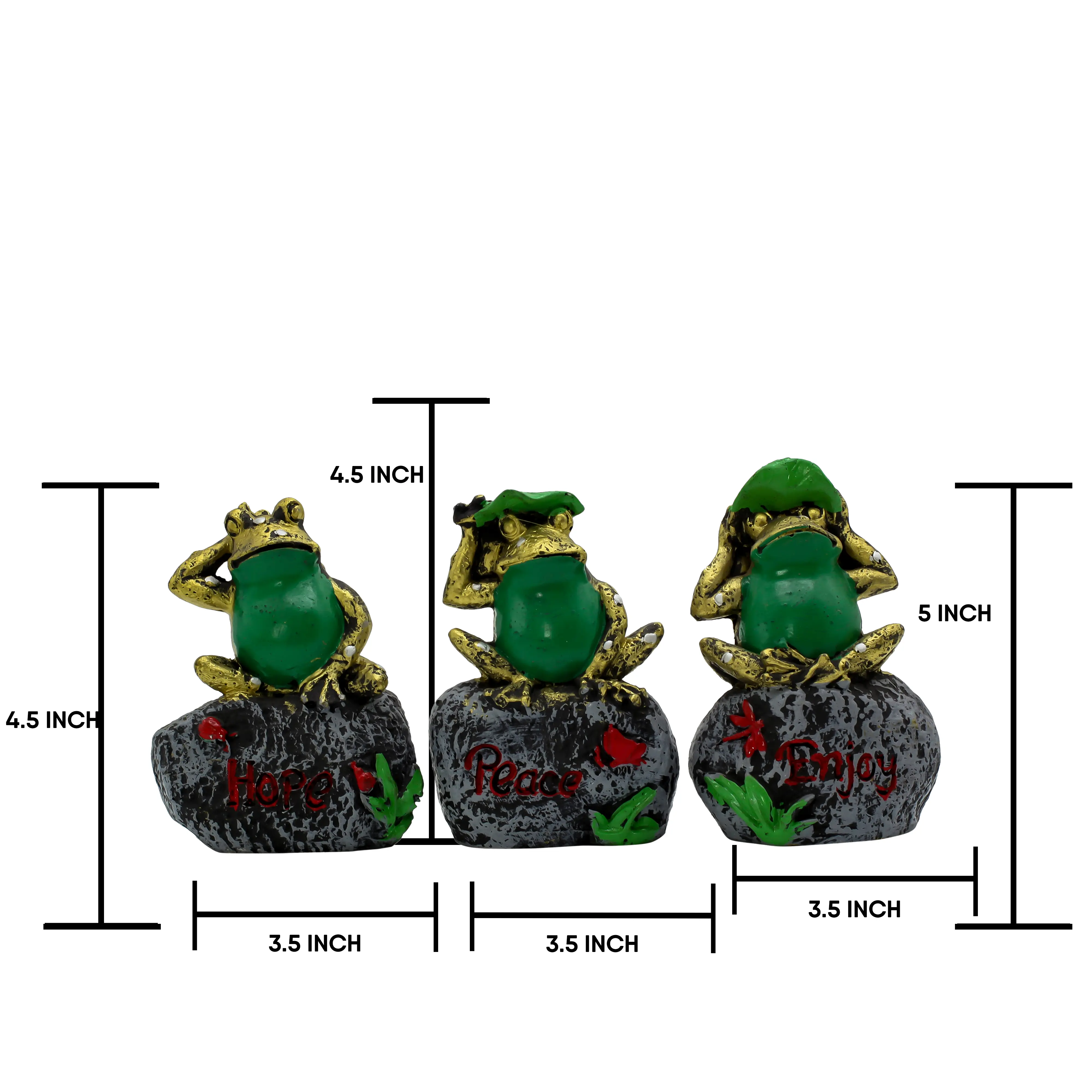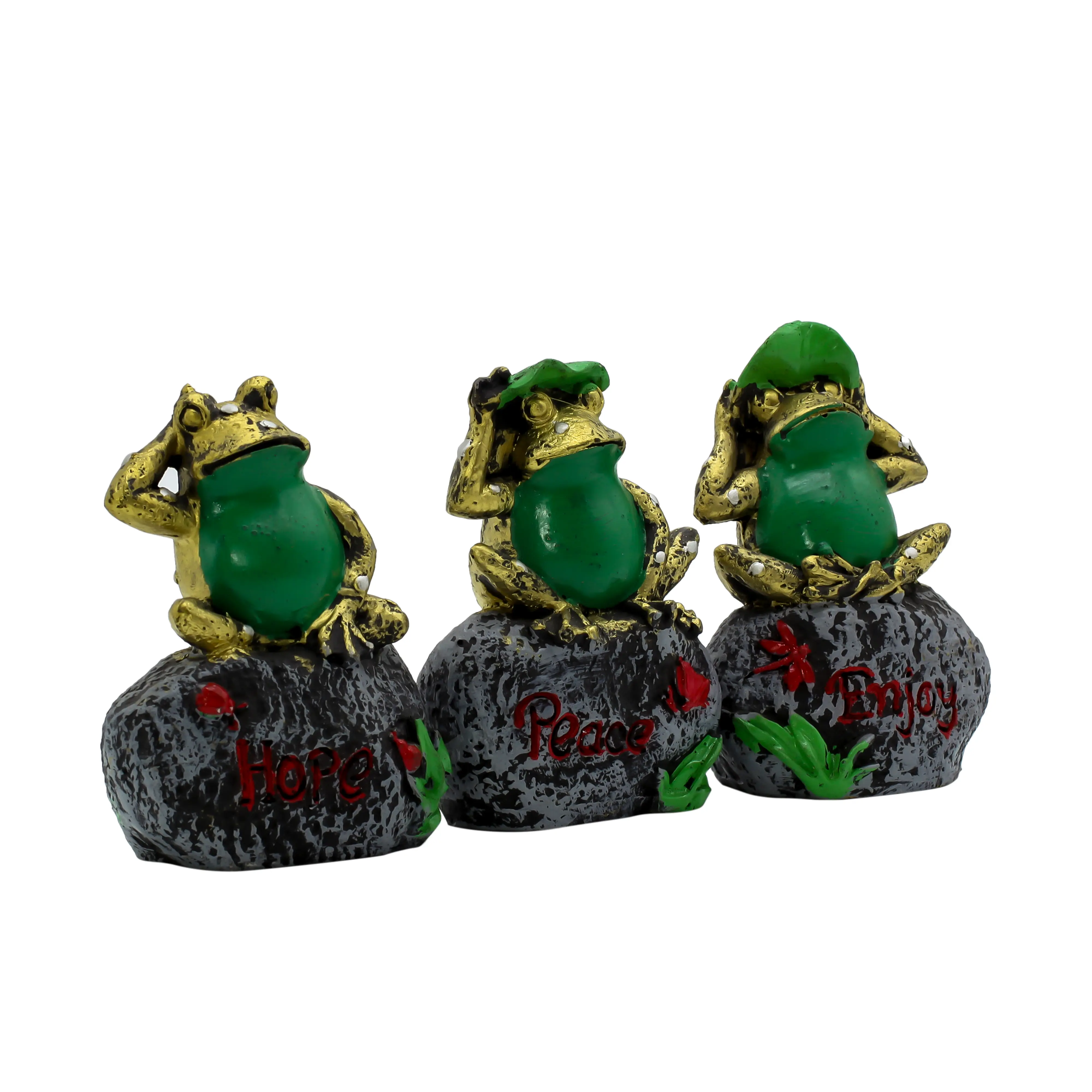 The Three Wise Frogs Resin Showpiece Set – Hope, Peace & Enjoy is a delightful décor collection that combines artistic design with meaningful symbolism. Inspired by the concept of mindful living, each frog represents a powerful life message—Hope for the future, Peace within oneself, and Enjoyment of the present moment.