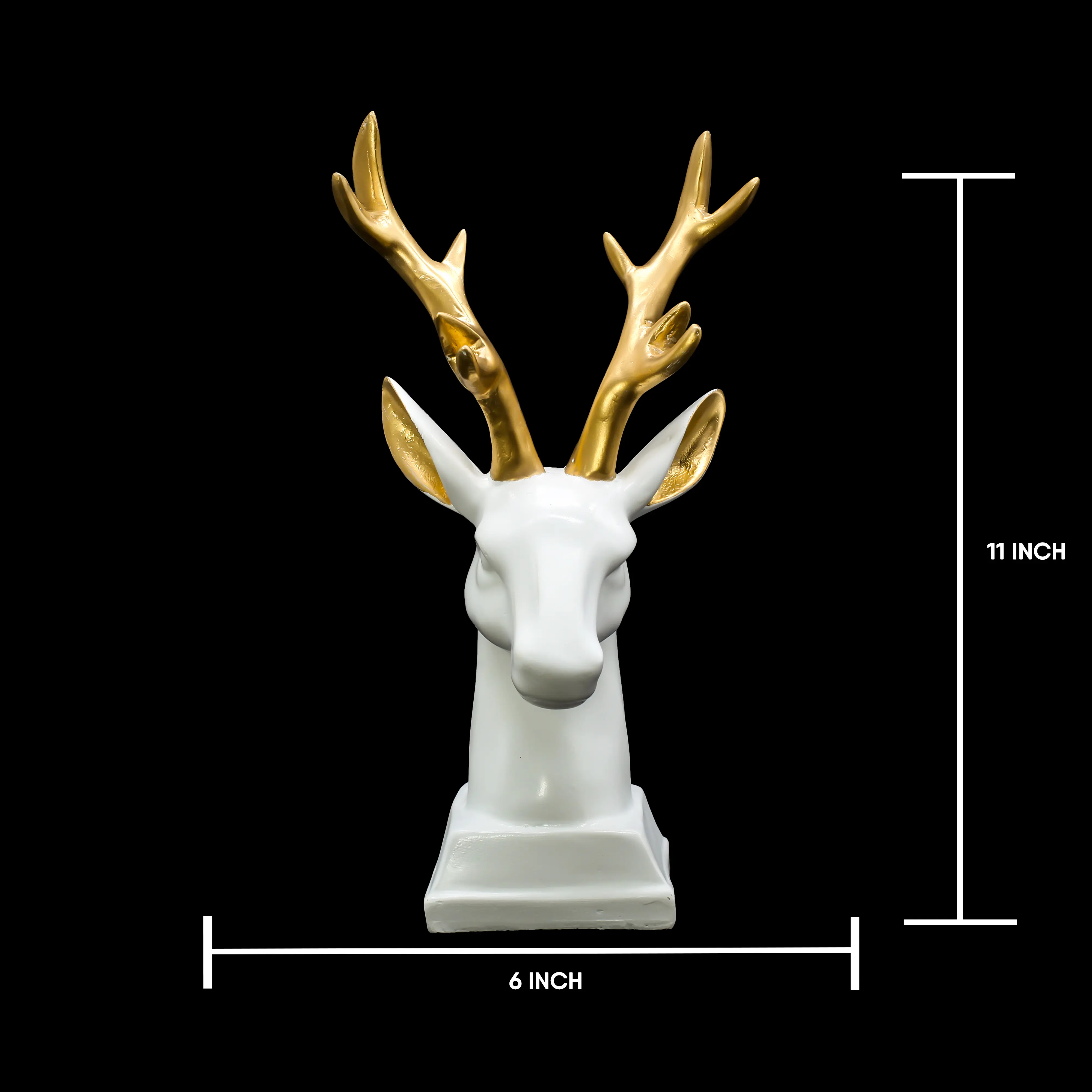 Enhance your décor with this Luxury White Deer Head Resin Showpiece with Golden Antlers, a perfect blend of elegance, symbolism, and modern design. Crafted from premium resin, this decorative figurine features a smooth white finish complemented by rich gold antlers, creating a sophisticated visual appeal. Symbolizing peace, prosperity, and positive energy, this deer showpiece is ideal for living rooms, bedrooms, offices, reception areas, and luxury interiors. Its compact size makes it suitable for shelves, tables, consoles, and work desks. Perfect as a housewarming gift, Diwali gift, wedding present, anniversary or corporate gift, this deer head sculpture adds calmness and refined beauty to any space. Durable, easy to clean, and timeless in design, it is an excellent choice for modern home styling.