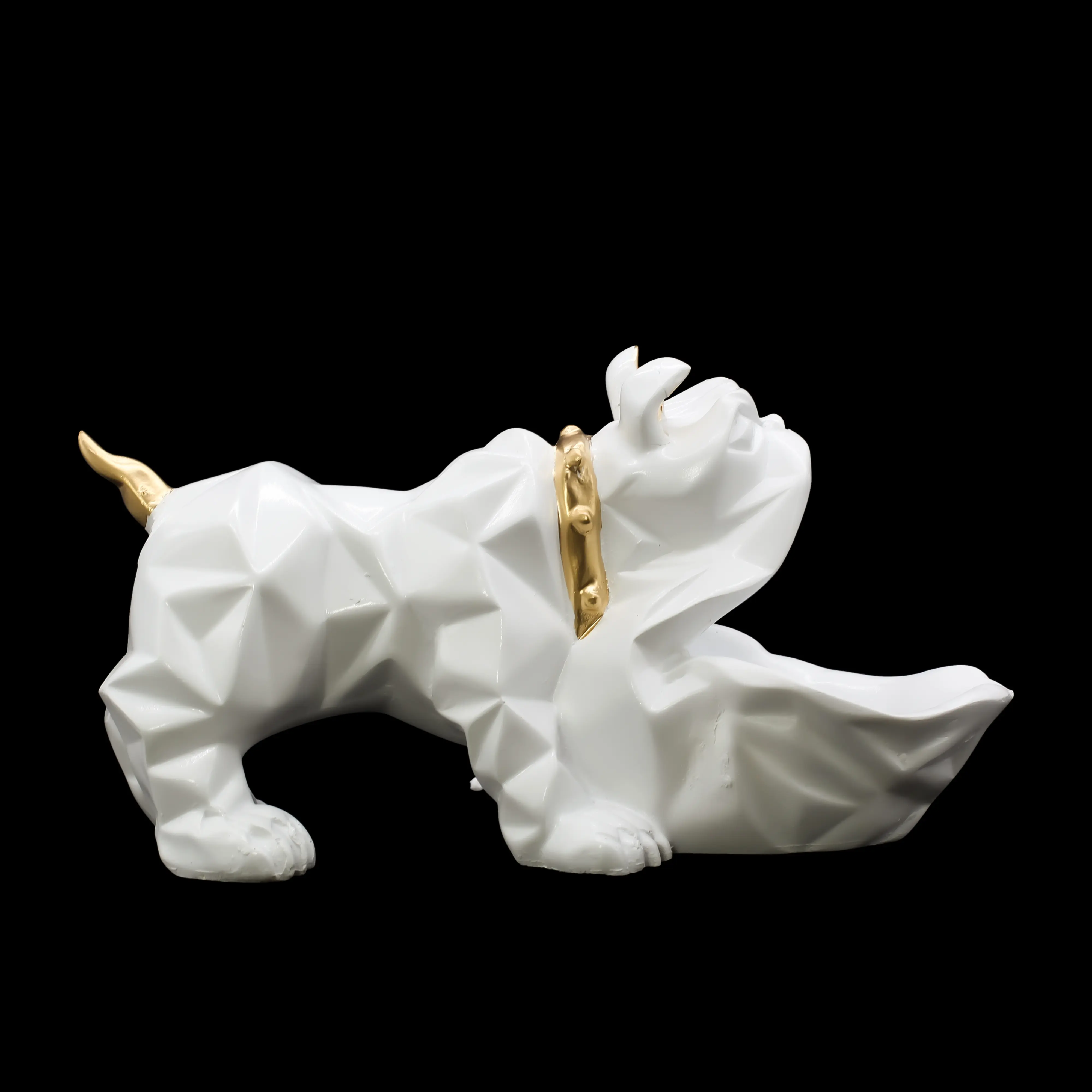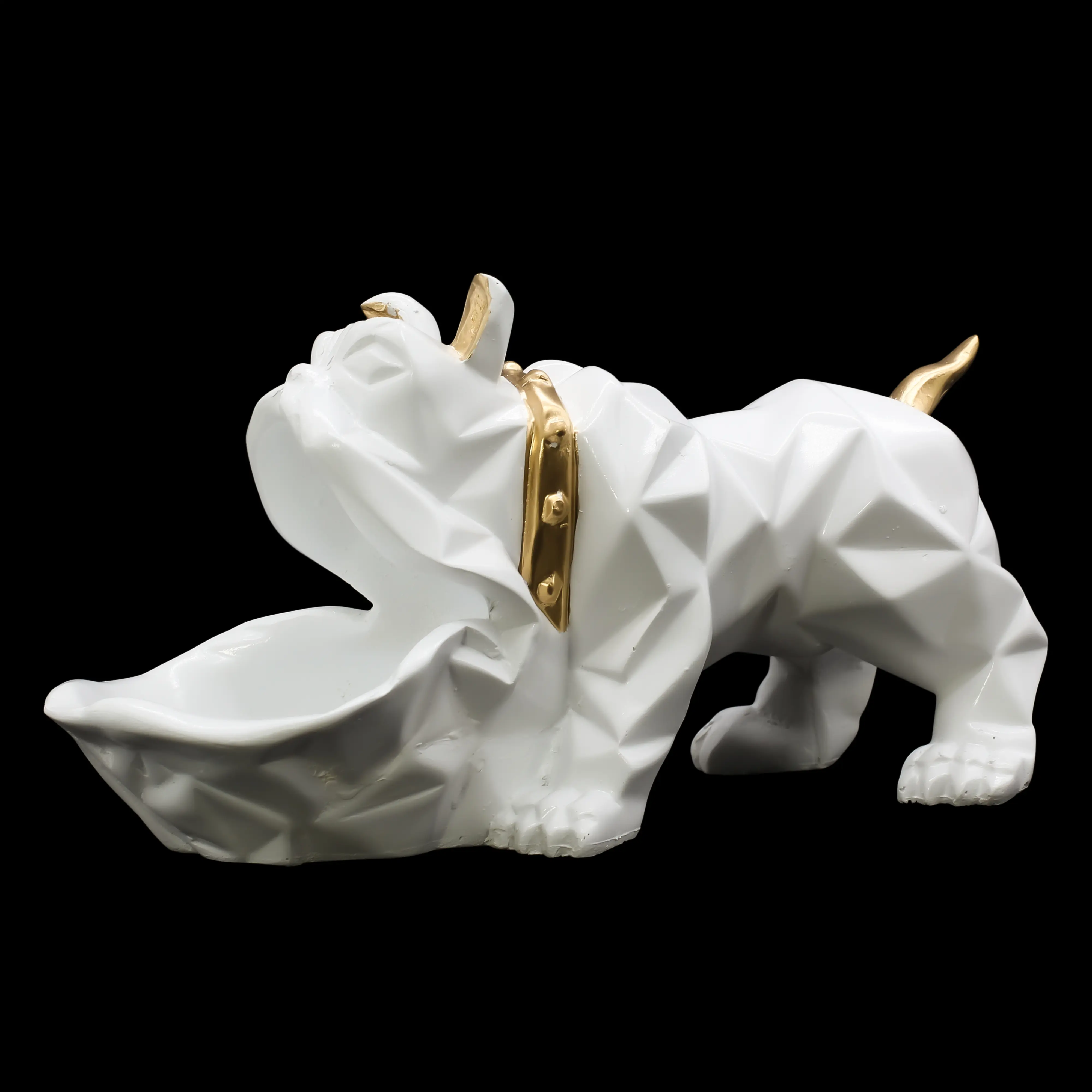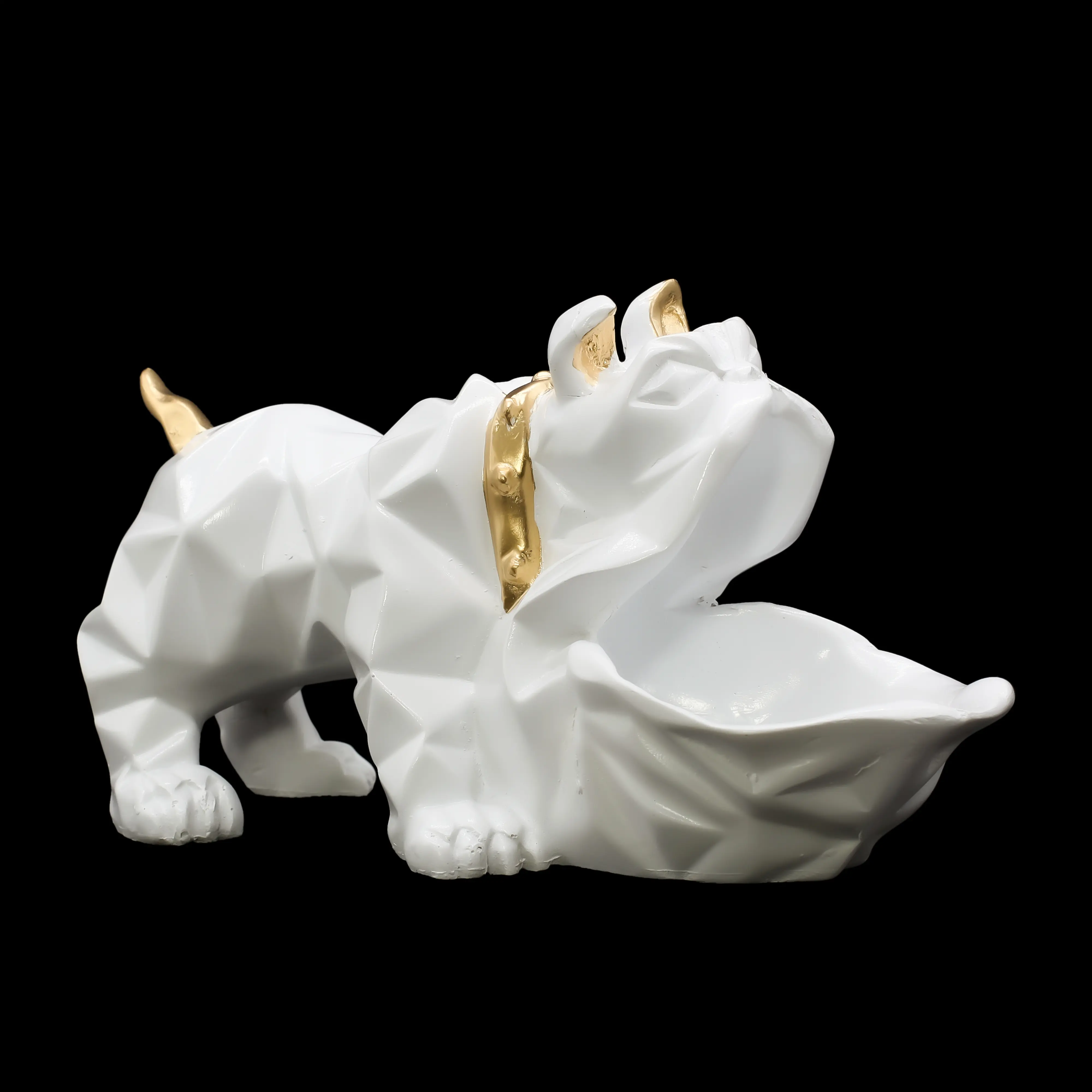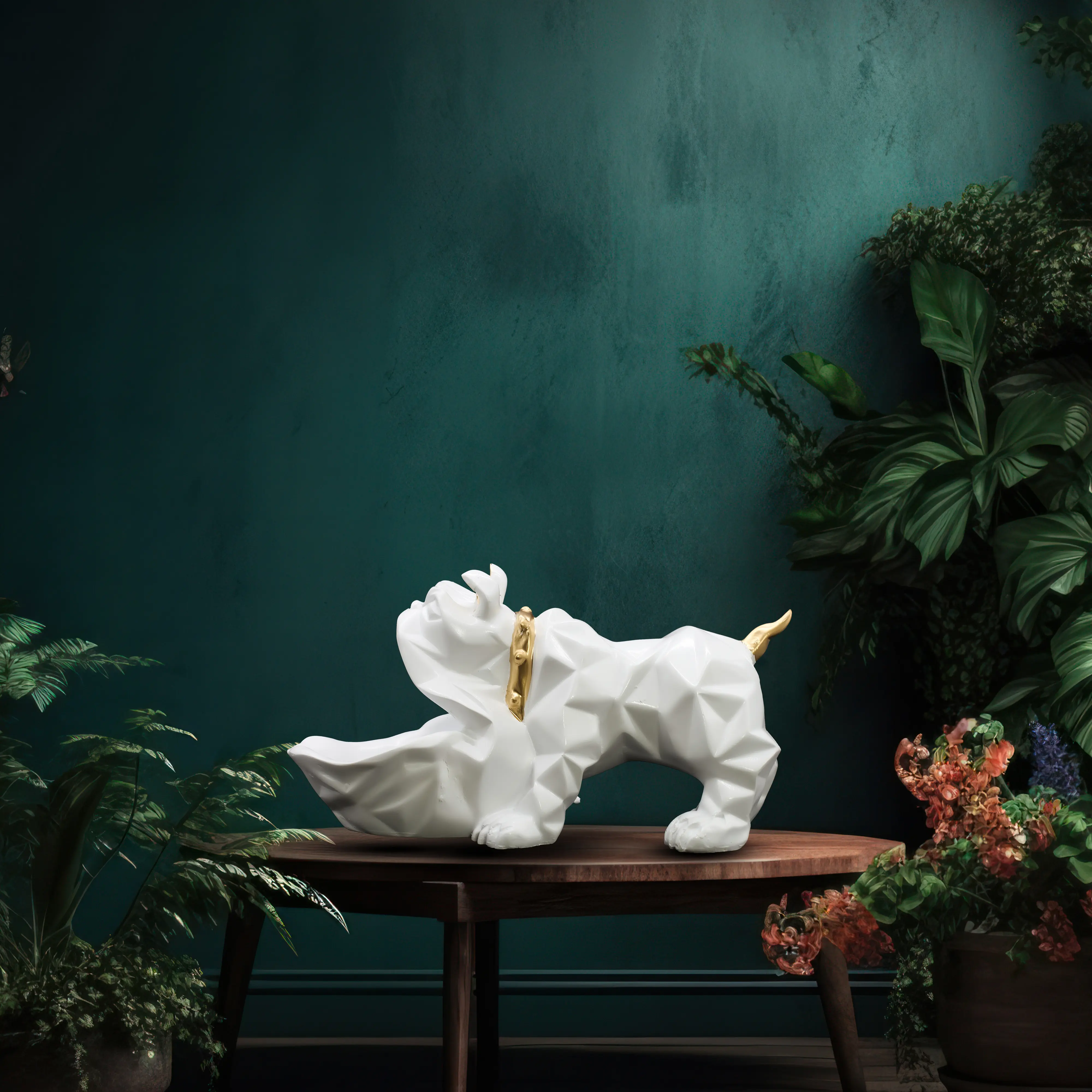 Add a bold modern touch to your décor with the Luxury White Geometric Bulldog Resin Showpiece with Bowl & Gold Collar by Urban Kraft. Crafted from premium polyresin, this designer bulldog figurine features a contemporary geometric design with a glossy white finish and elegant gold detailing. The integrated bowl adds a functional yet artistic element, making it a unique décor accent. Perfect for living rooms, offices, shelves, coffee tables, cafés, and luxury interiors, this bulldog showpiece complements modern, minimalist, and upscale décor styles. Durable, easy to maintain, and visually striking, it also makes an excellent gift for dog lovers, housewarmings, birthdays, anniversaries, and festive occasions.