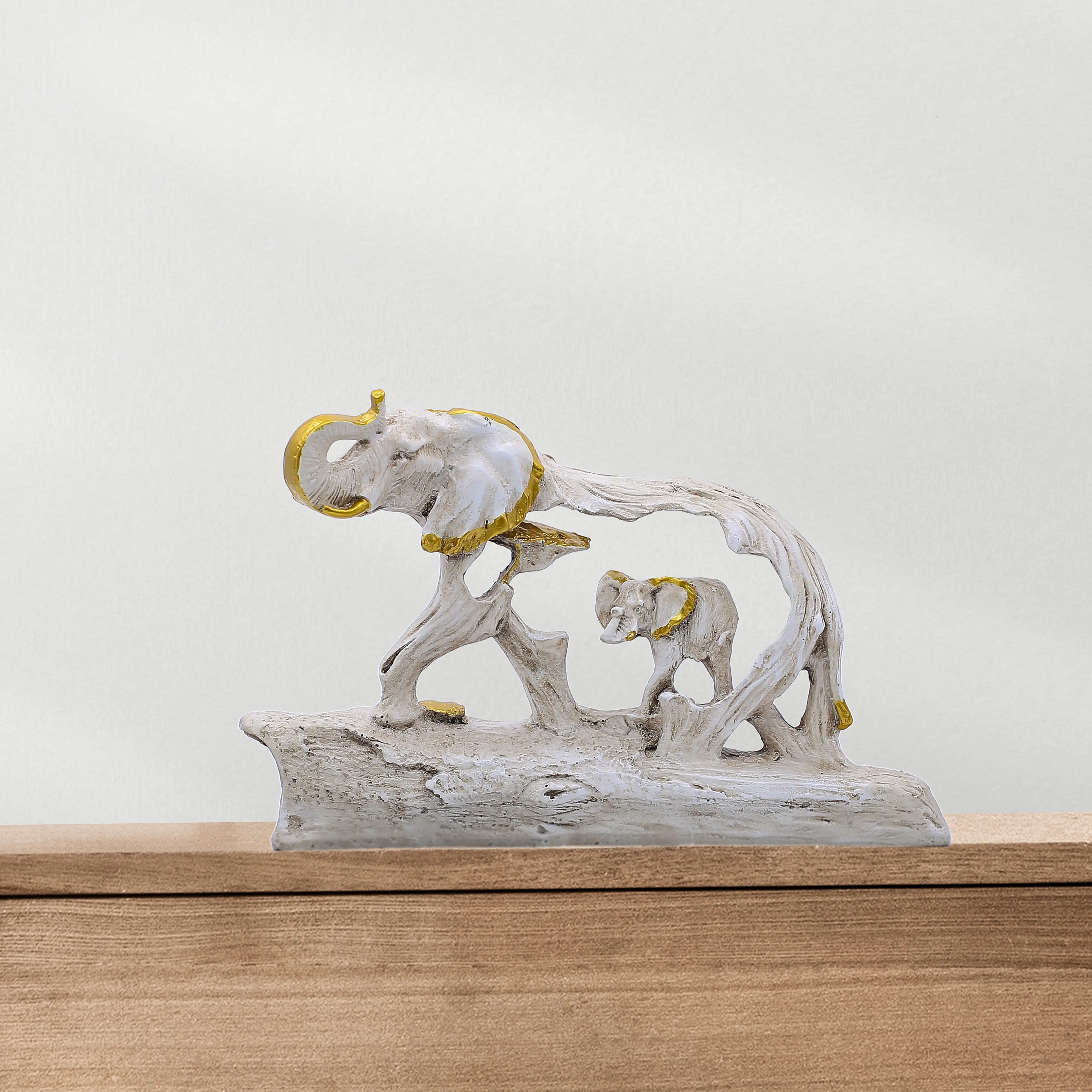 The bond between a mother elephant and her calf is one of the strongest in the animal kingdom. Our White & Gold Elephant Mother & Baby Figurine honors this connection in a piece of decor that is both rustic and refined. Designed for nature lovers and art enthusiasts alike, this statue brings a sense of adventure and warmth to any room.