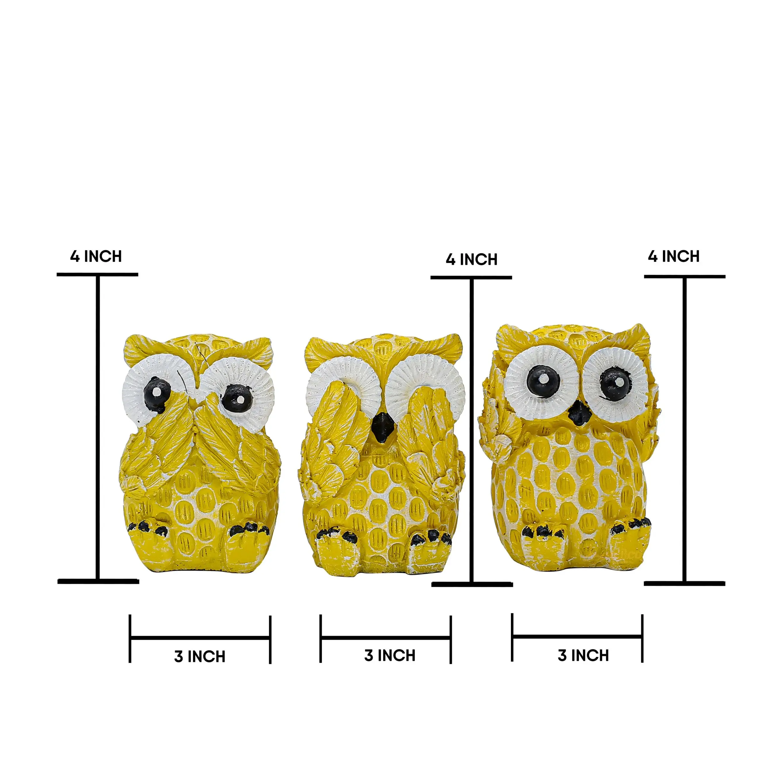 Timeless Wisdom, Modern Style The proverb "See no evil, hear no evil, speak no evil" has been a symbol of moral integrity for centuries. We have reimagined this classic concept with a delightful avian twist. Our Yellow & White Three Wise Owls Statue Set captures this philosophy in the form of three irresistibly cute owls. With their wings covering their eyes, ears, and beak respectively, they serve as a daily affirmation to focus on the good in life and ignore the negative.