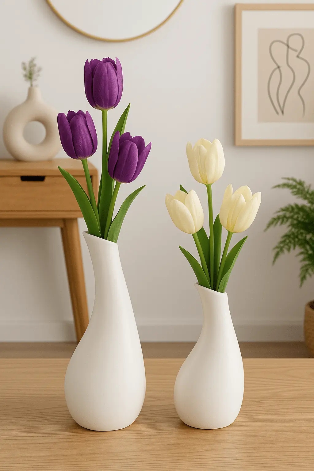 Redefine simplicity in your home with our Modern White Ceramic Teardrop Vase. Designed for the contemporary homeowner, this vase moves away from sharp angles and embraces soft, organic curves. Its unique "swan-neck" shape creates a stunning visual flow, making it a piece of sculptural art even when it stands empty. Made from premium-grade ceramic, the vase features a flawless matte white finish that exudes elegance. It is the perfect canvas for your colorful blooms—especially vibrant tulips, as shown in the photos. Whether placed on a dining table, a bedside nightstand, or a minimalist bookshelf, this vessel brings a sense of calm and sophistication to your environment. Durable, stylish, and timeless, it is the ultimate accessory for modern living.