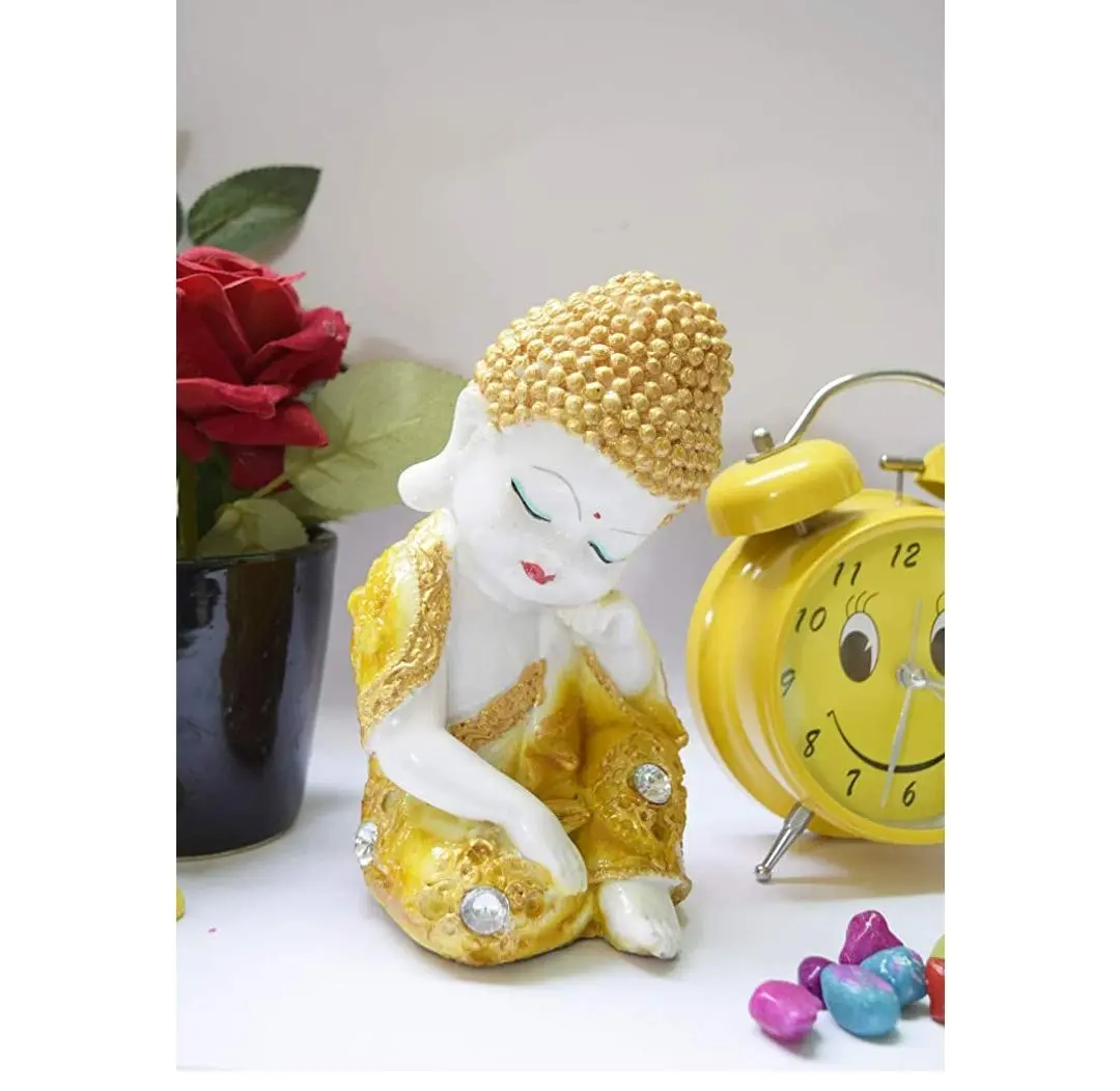 Cute Thinking Baby Buddha Statue – Handcrafted Yellow & Gold Resin Little Monk Figurine for Car Dashboard, Home Decor & Peace Gifts ₹ 1 ₹ 399