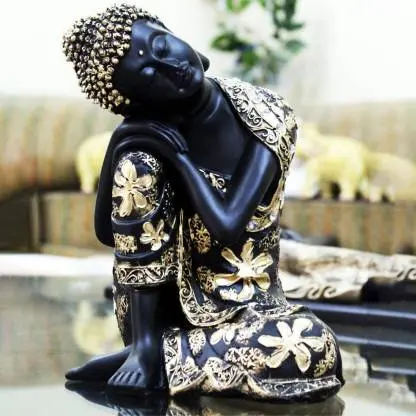 Black & Gold Thinking Buddha Statue – Resting Monk Figurine | Zen Meditation Decor for Living Room, Office Desk & Shelf | Spiritual Feng Shui Gift for Peace ₹ 1 ₹ 399