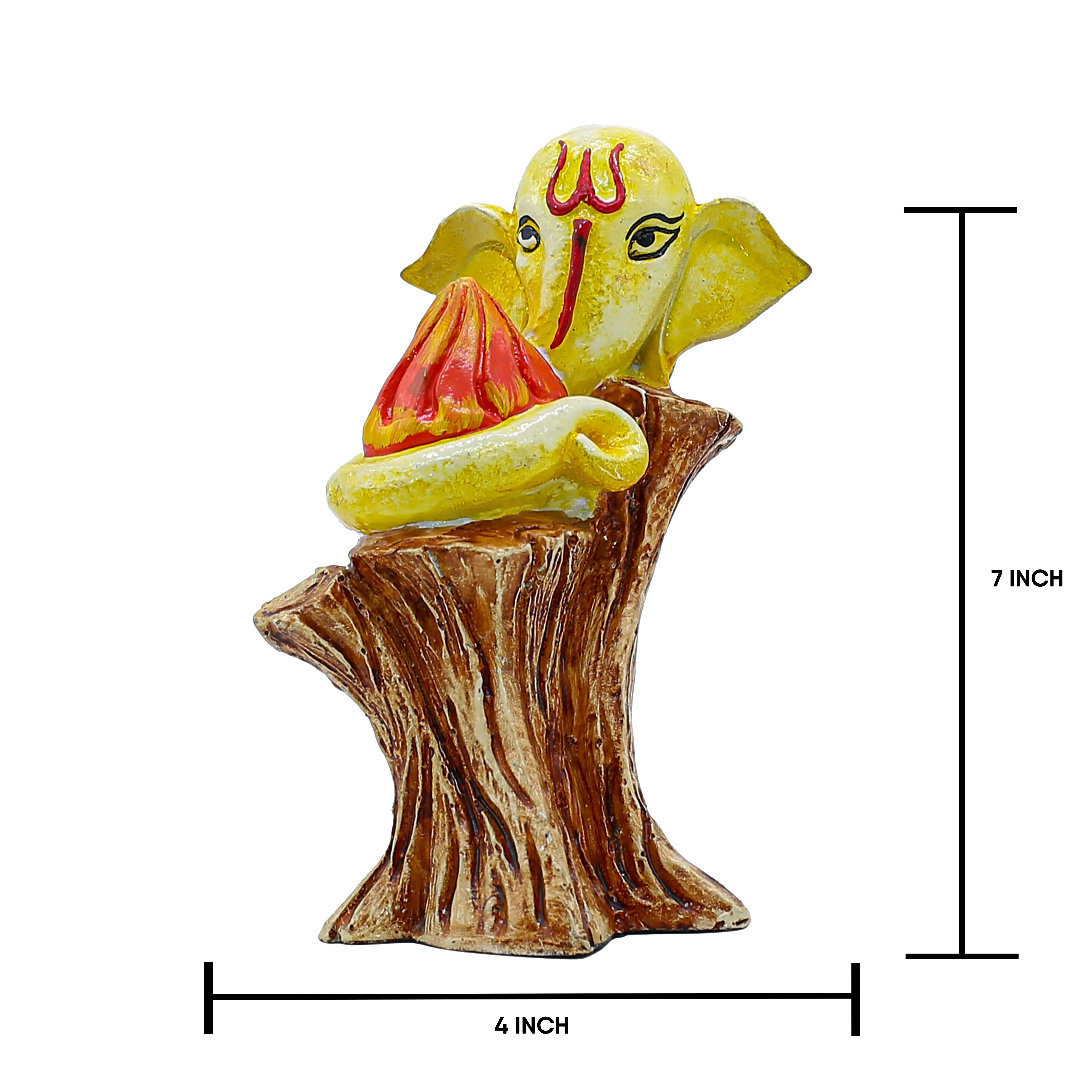 Add a touch of artistic divinity to your surroundings with this Resin Ganesha on Tree Trunk Statue. This unique figurine reimagines traditional iconography by blending it with organic textures. Crafted from sturdy polyresin, the idol mimics the look of a weathered tree stump painted in white and brown, from which the divine form of Lord Ganesha emerges. The idol stands out with its vivid color palette; the bright white face of the deity represents purity, while the striking orange and yellow ears symbolize energy and enthusiasm. Whether you place it on your car dashboard as a travel guardian or on your office desk for inspiration, this durable resin statue is designed to bring positive vibes and remove obstacles. It is a perfect fusion of modern art and traditional devotion, making it a thoughtful gift for friends and family.
