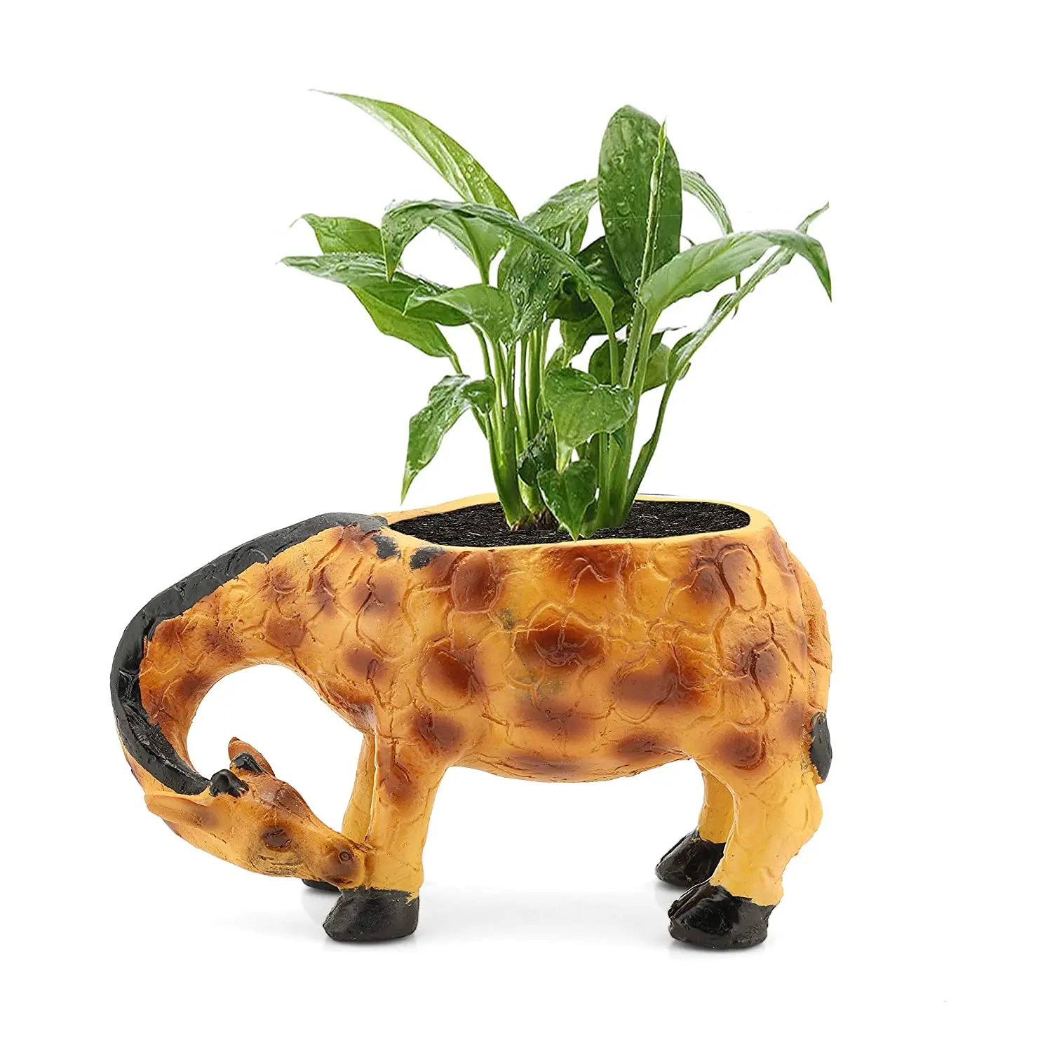 Add a touch of the African savanna to your desk or windowsill with this captivating Realistic Grazing Giraffe Succulent Planter. This multifunctional decor piece is a tribute to the world's tallest mammal, captured in a unique and gentle "grazing" pose where its long neck curves down to the ground. The design creates a natural bowl shape on its back, perfect for holding your favorite miniature plants. Crafted from high-grade polyresin, this pot boasts realistic textures, from the iconic brown spots on its yellow coat to the detailed black mane running down its neck. It is the ideal home for a low-maintenance succulent, air plant, or cactus. Alternatively, let this gentle giant organize your workspace by using it to hold pens and pencils. Whether nestled on a bookshelf or brightening up a study table, this giraffe brings a sense of wild beauty and calm to your home.